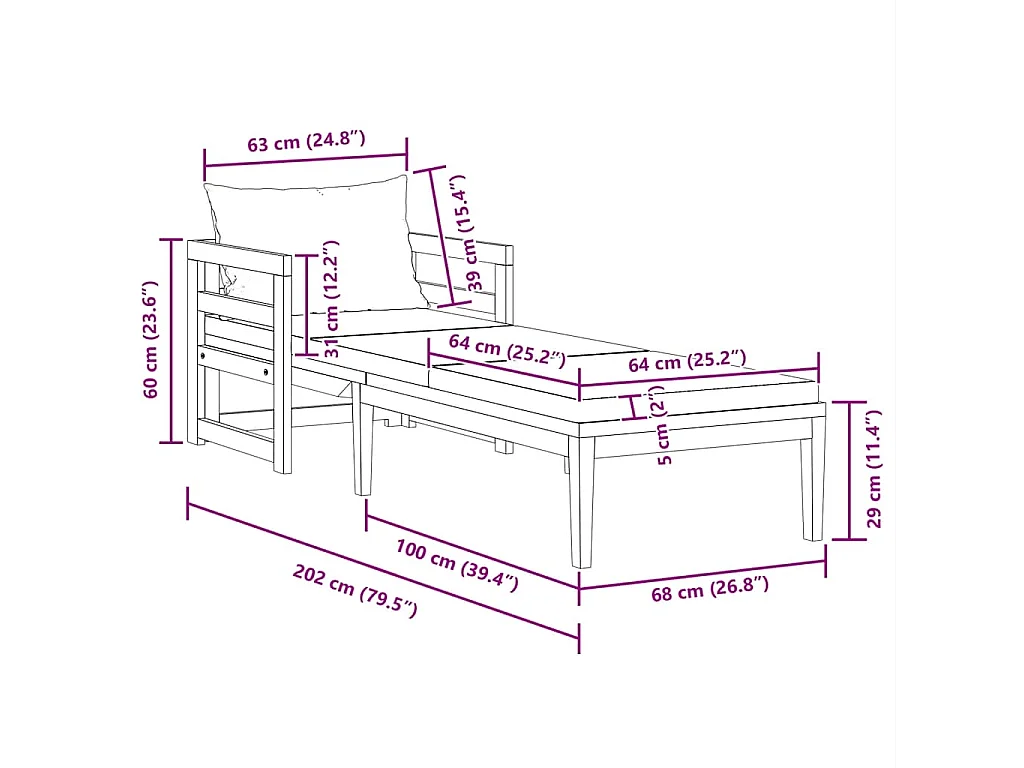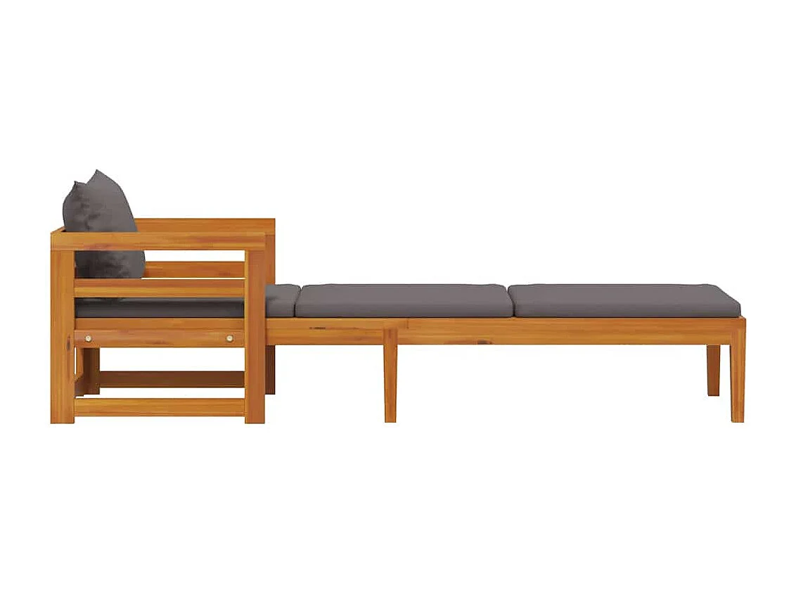 Chaise longue avec coussins gris foncé Bois d'acacia solide
