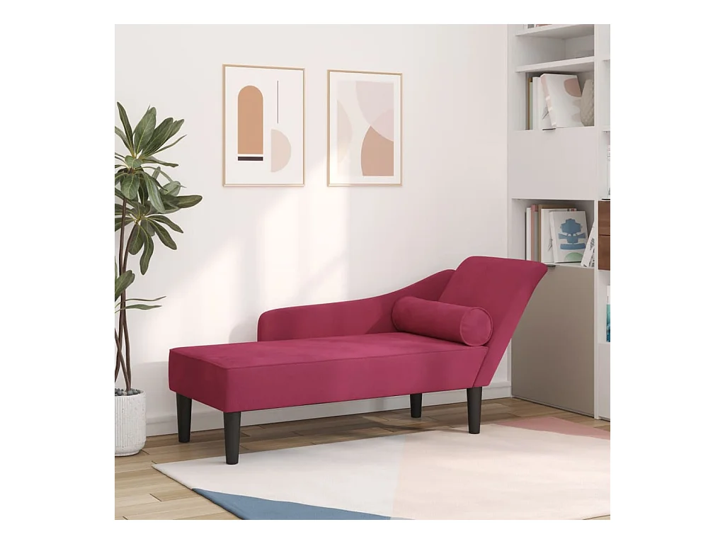 Chaise longue avec coussins rouge bordeaux velours