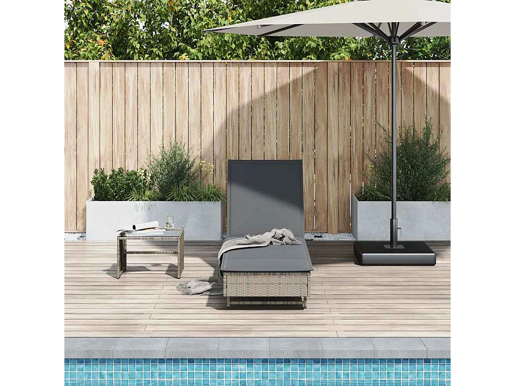 Chaise longue avec coussins gris 114x205x73 cm résine tressée