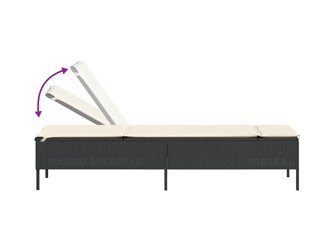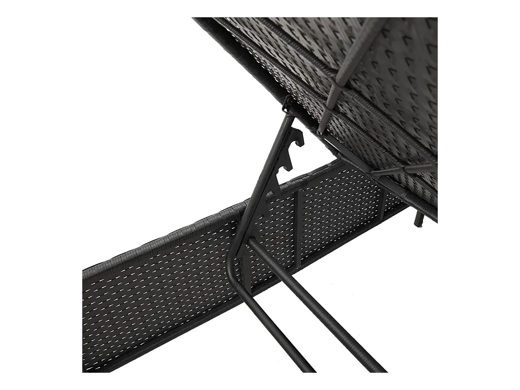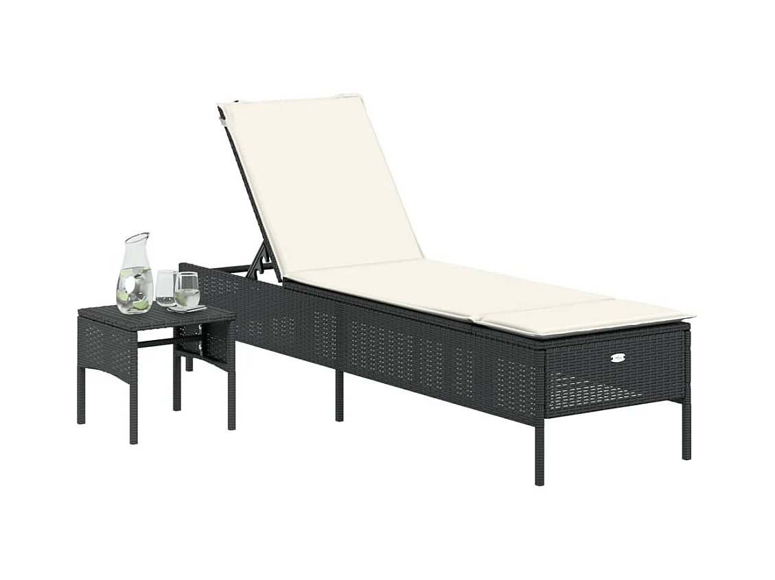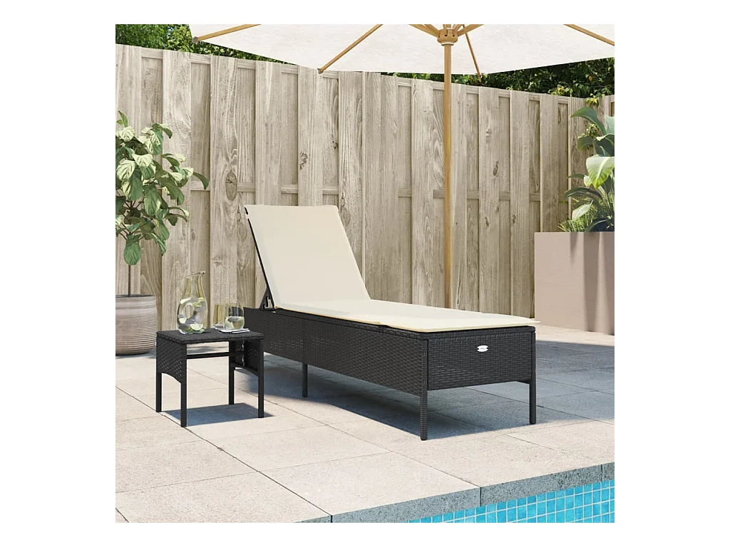 Chaise longue avec table et coussin noir résine tressée