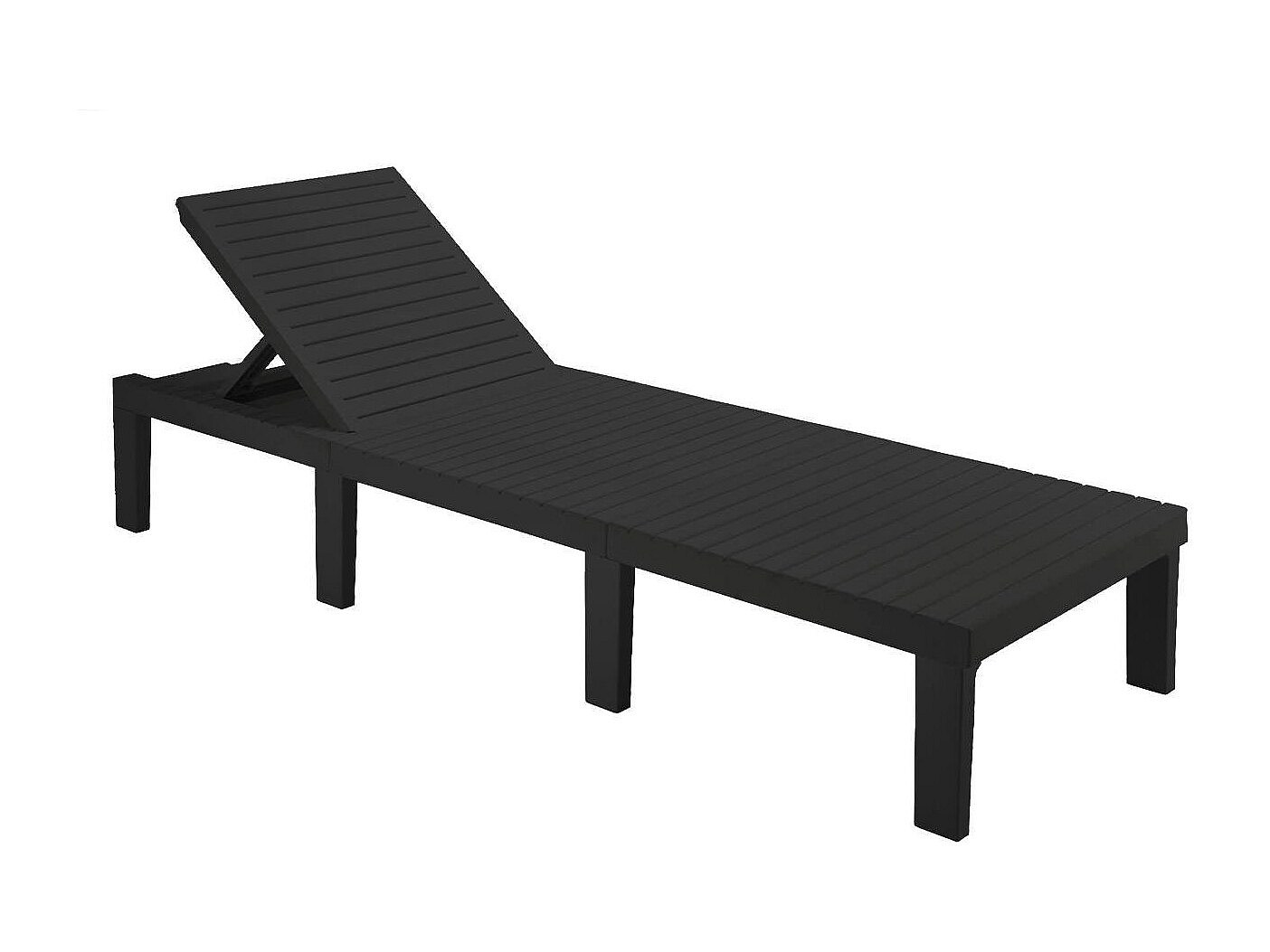 Bain de Soleil Inclinable Chaise Longue Dossier Réglable sur 5 Positions Charge 180KG Résistante aux Intempéries pour Plage Noir