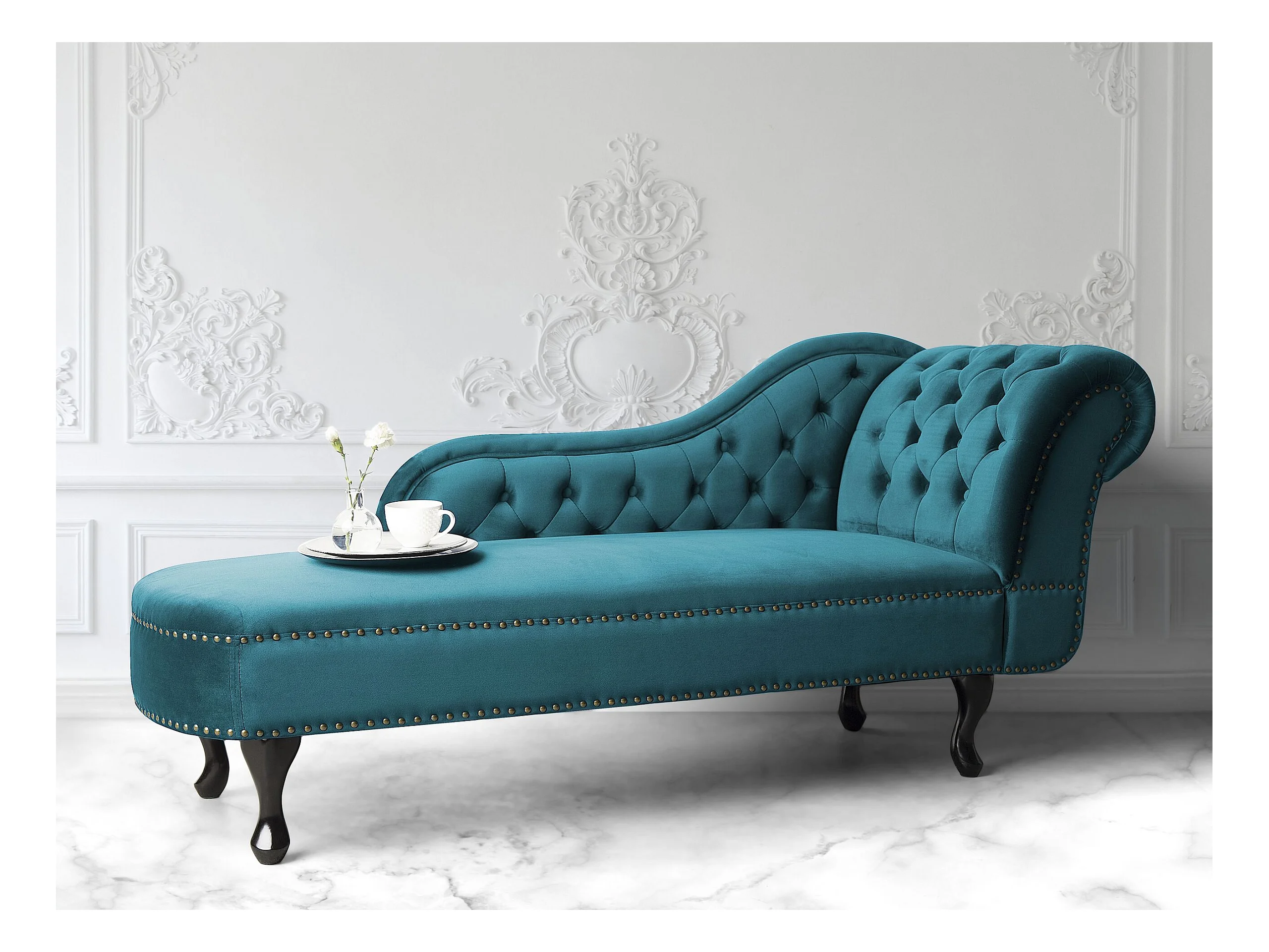 Chaise longue côté droit NIMES Velours Bleu paon
