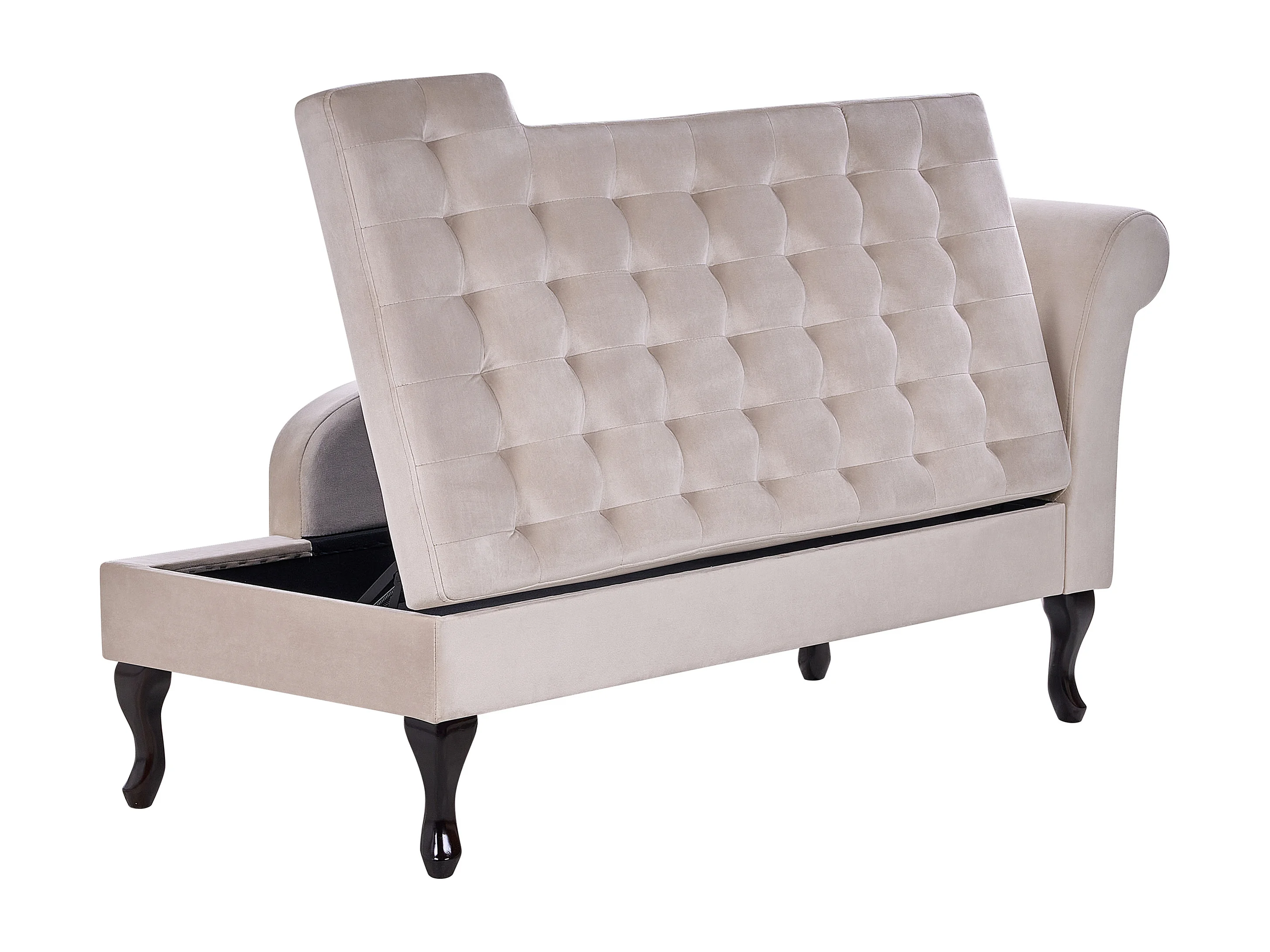 Chaise longue côté droit PESSAC Velours Beige clair avec rangement