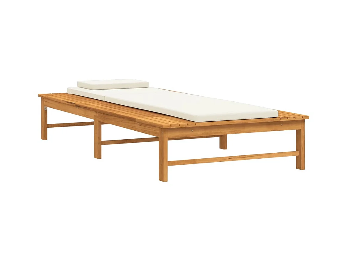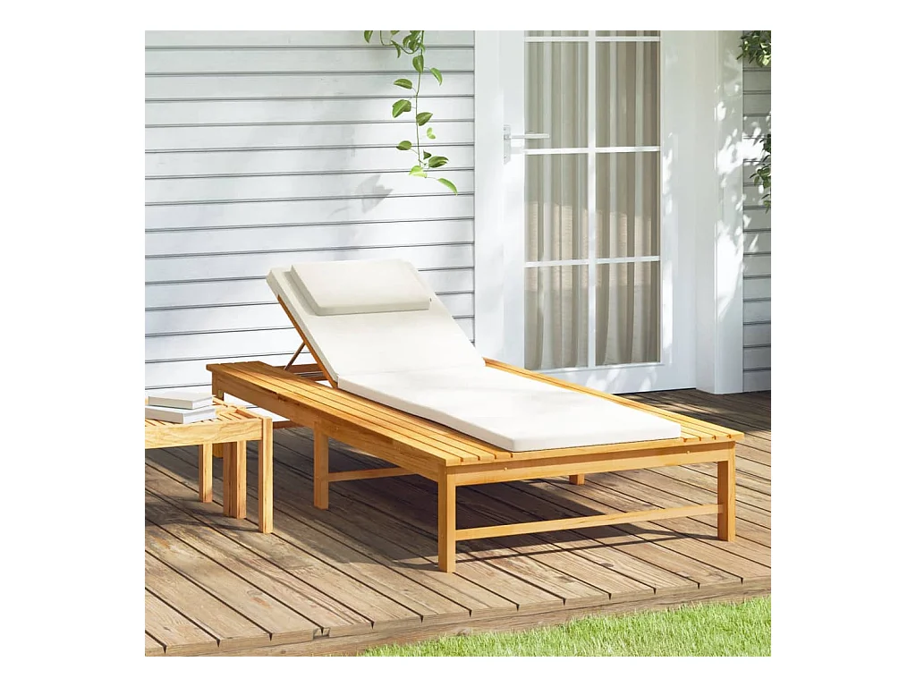 Chaise longue coussin/oreiller blanc crème bois massif acacia