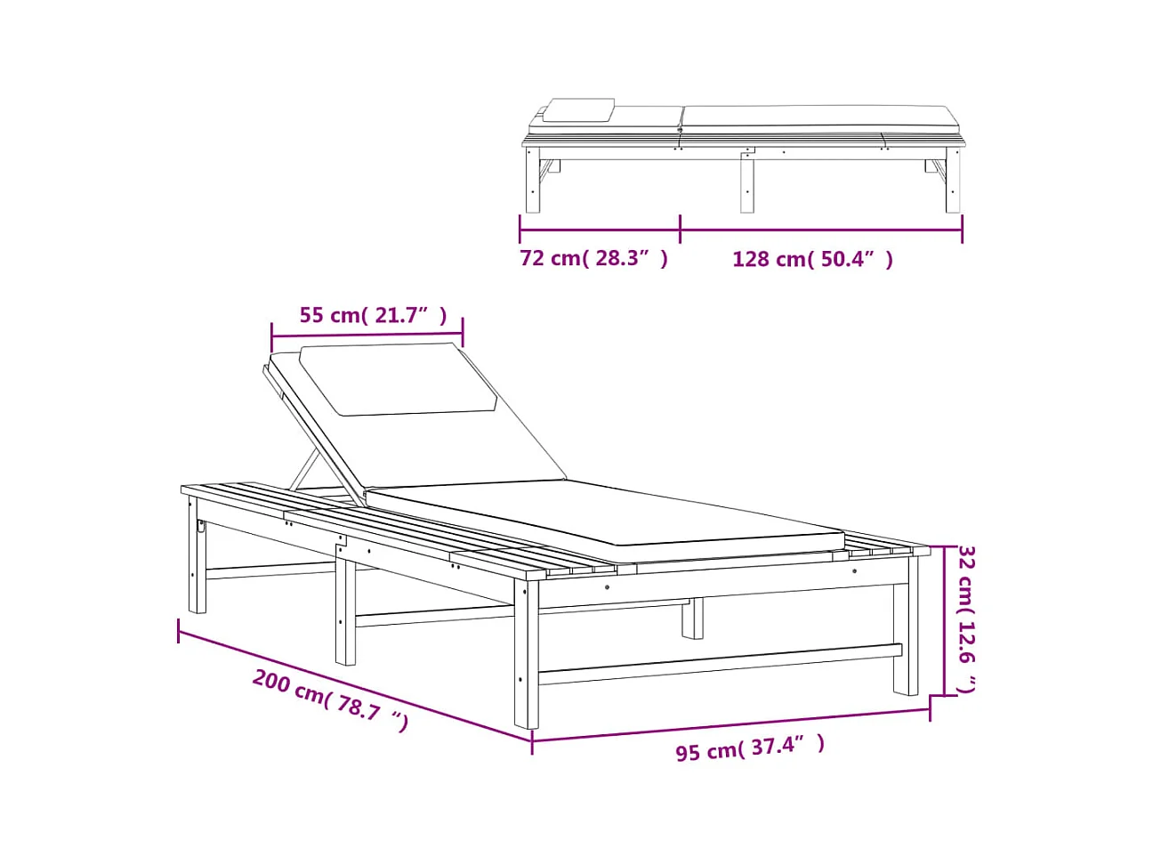 Chaise longue Bois d'acacia solide