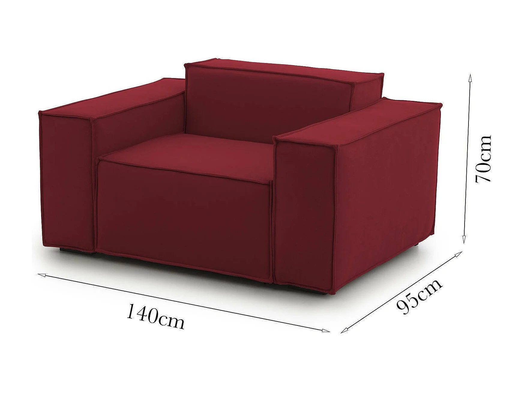 Fauteuil Dciurri, Fauteuil de salon, 100% Made in Italy, Fauteuil relaxant en tissu rembourré, 140x95h70 cm, Rouge