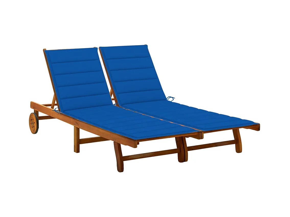 Chaise longue de jardin 2 places avec coussins Acacia solide