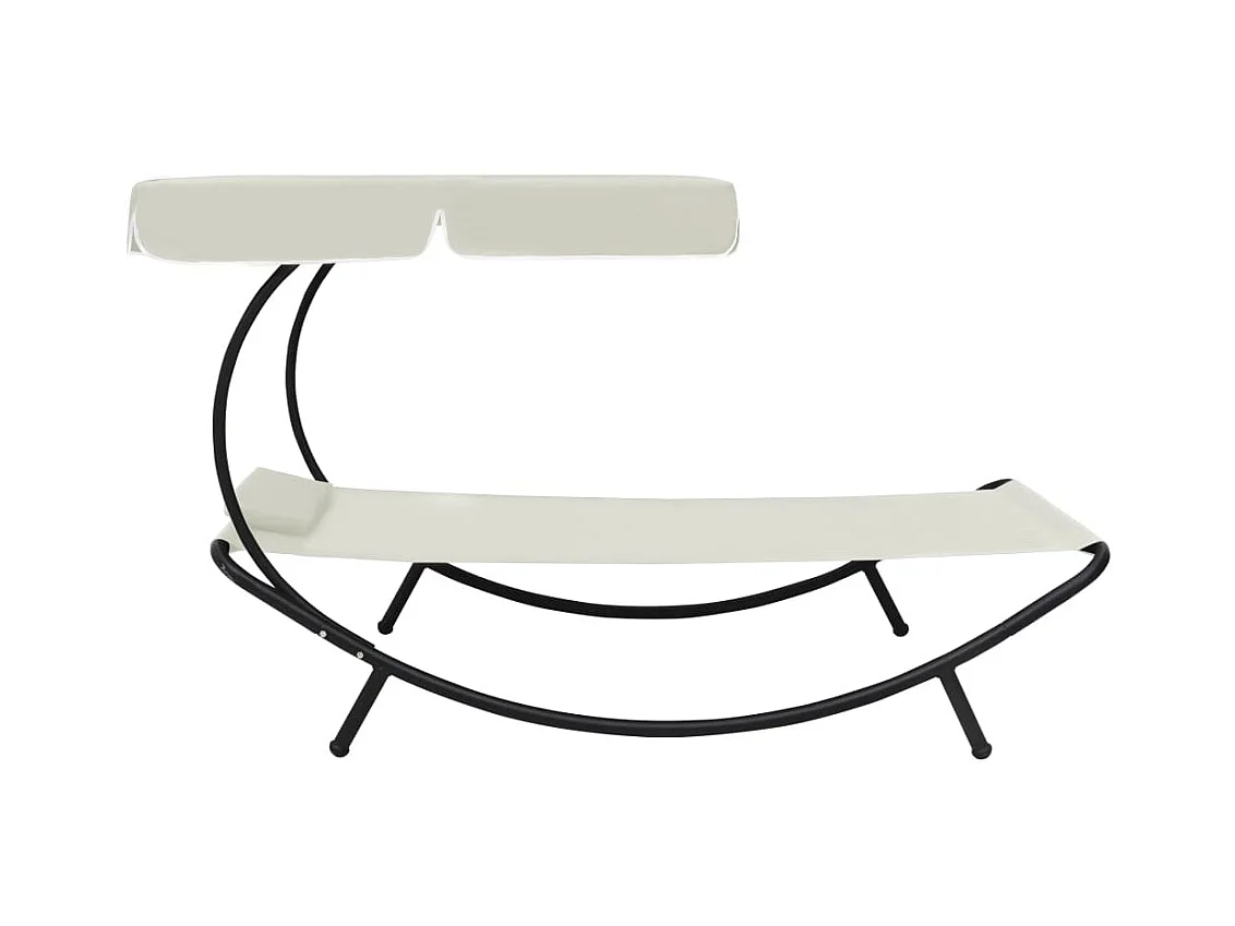 Chaise longue avec auvent crème 167x80x195 cm tissu et acier