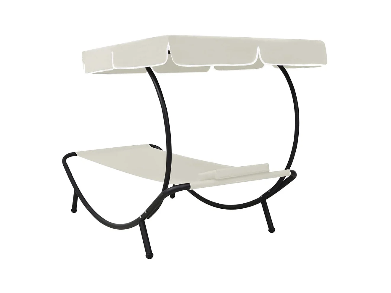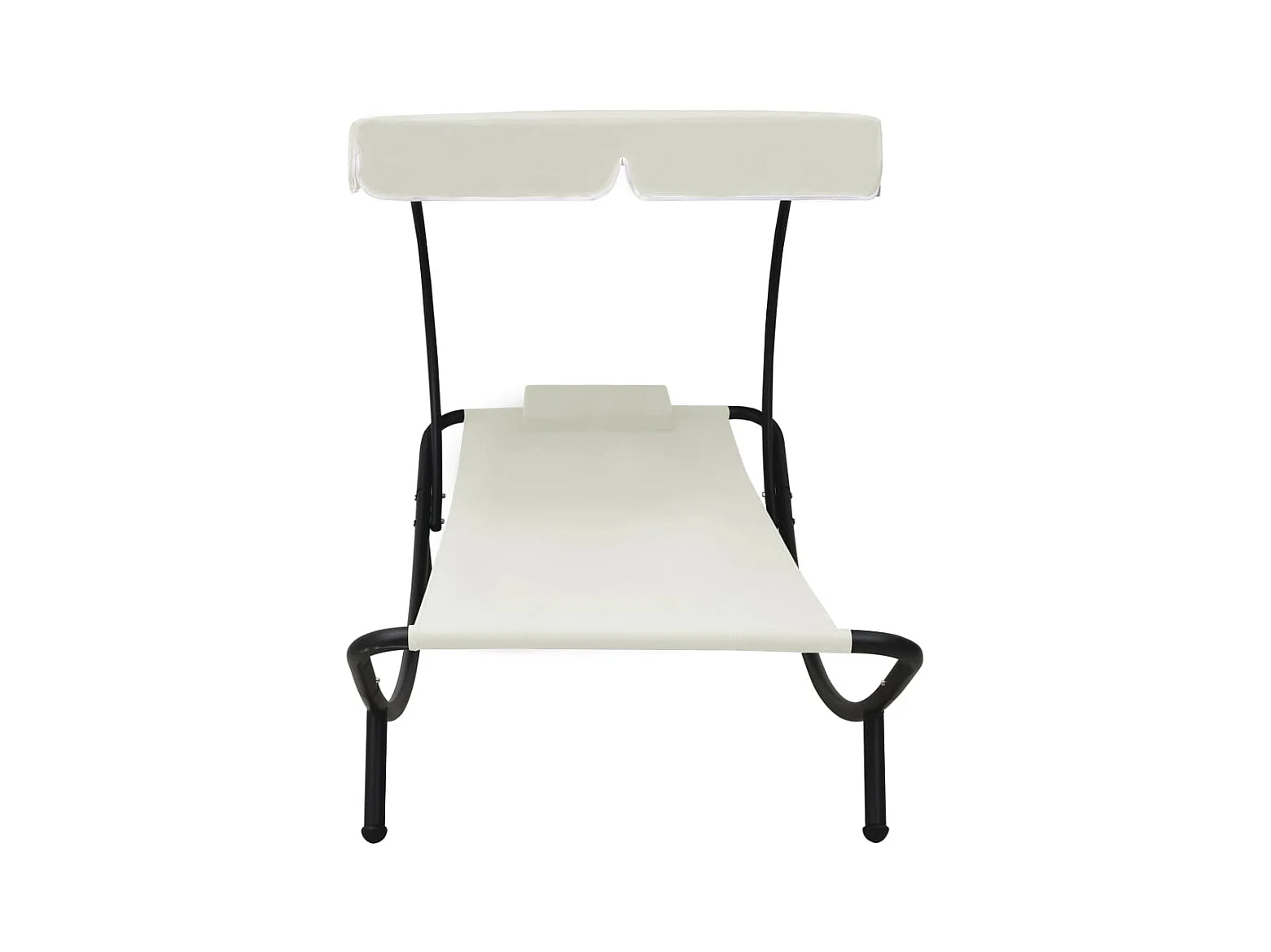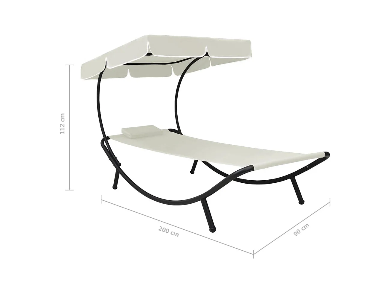 Chaise longue de jardin avec auvent et oreiller Blanc crème