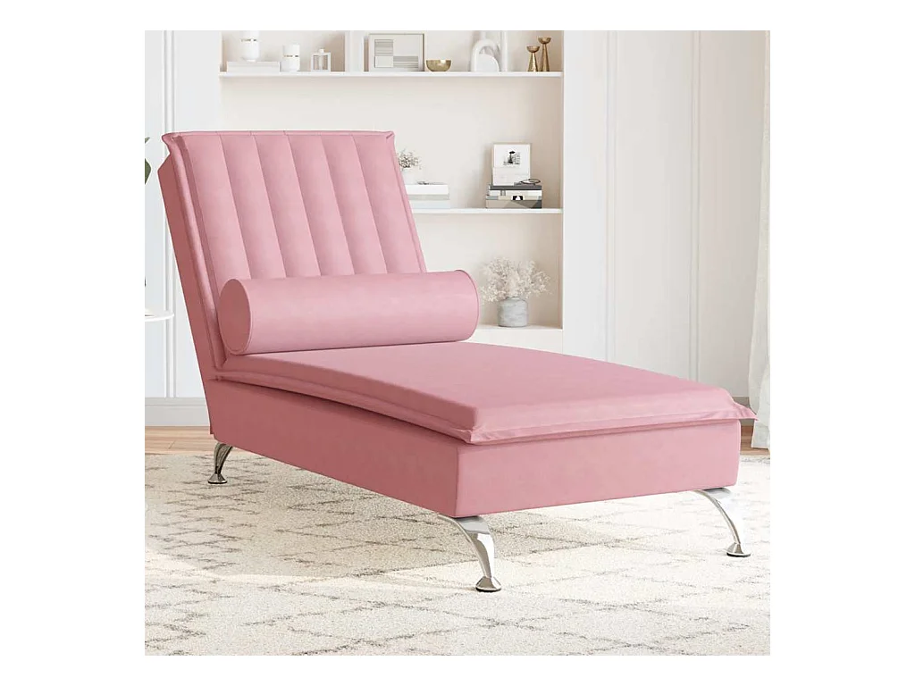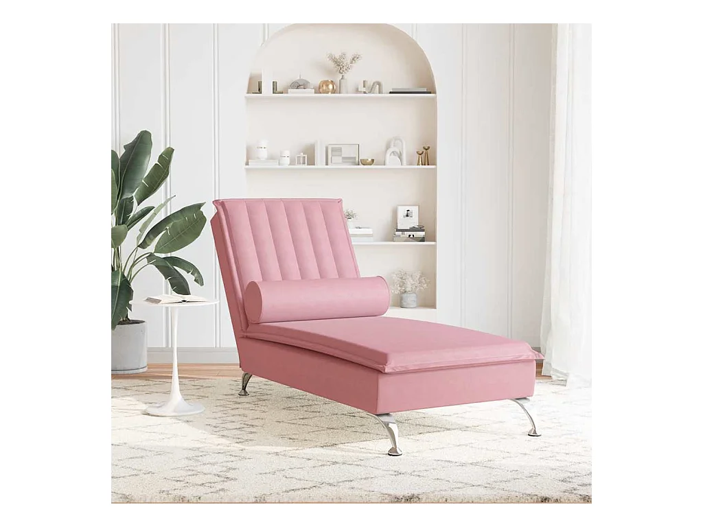 Chaise longue de massage avec traversin rose velours