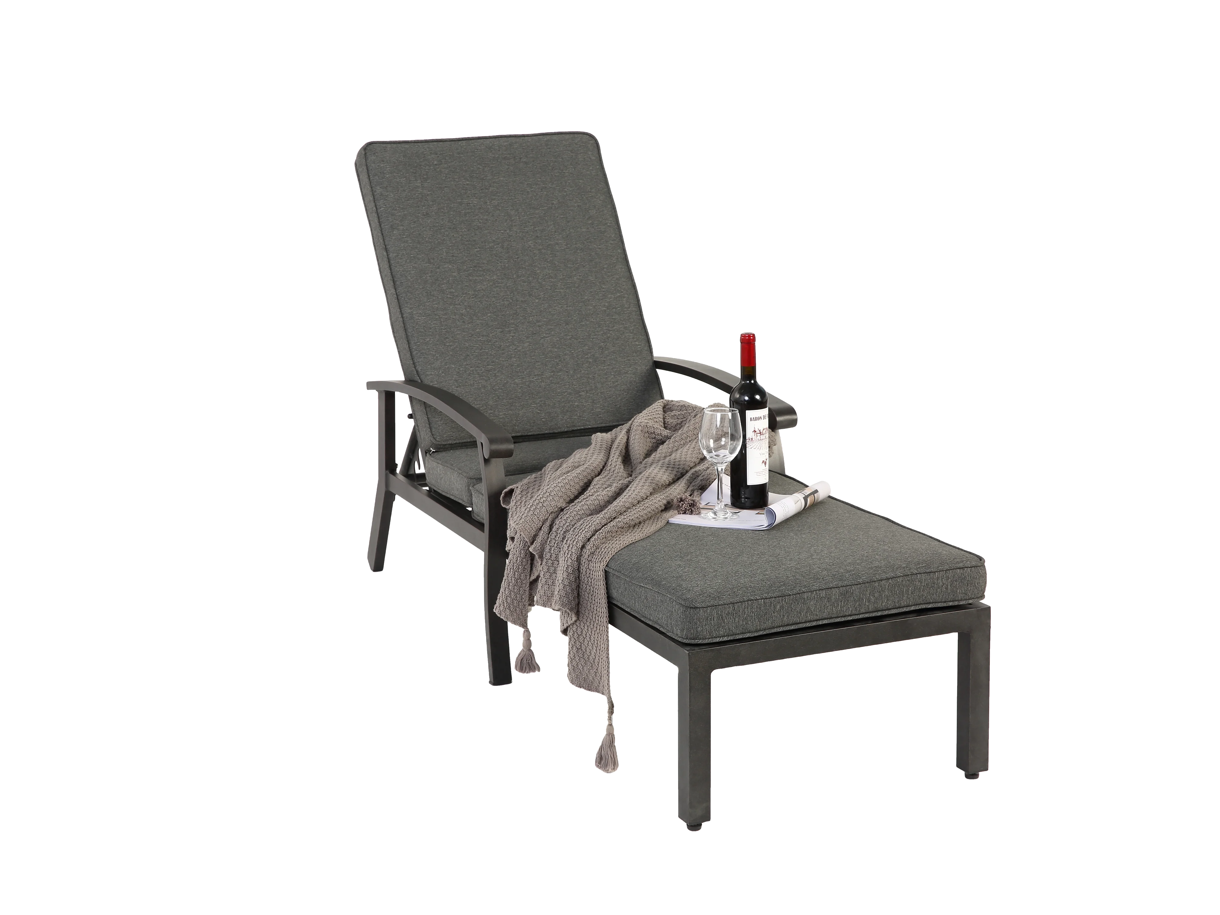 Chaise longue de patio réglable avec coussin en coton, aluminium résistant à la rouille, gris (204x58x100/30 cm)