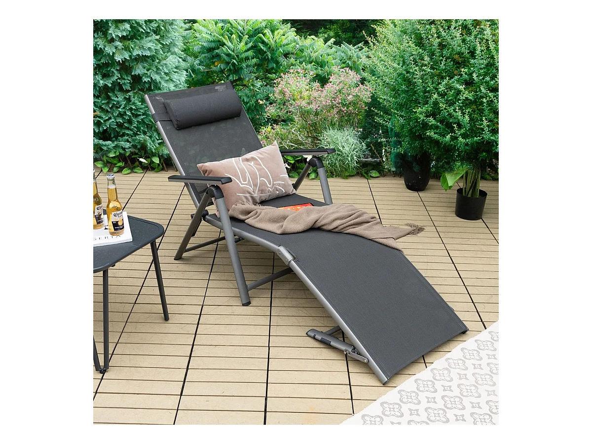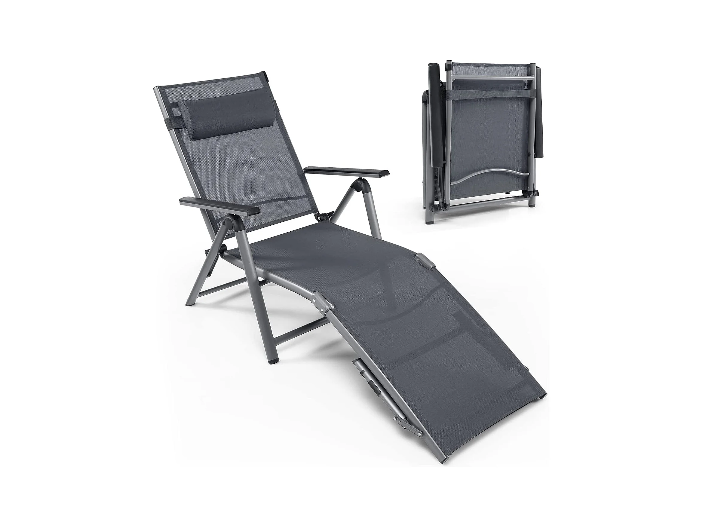 Seville Chaise longue de jardin, chaise de plage pliante, gris.