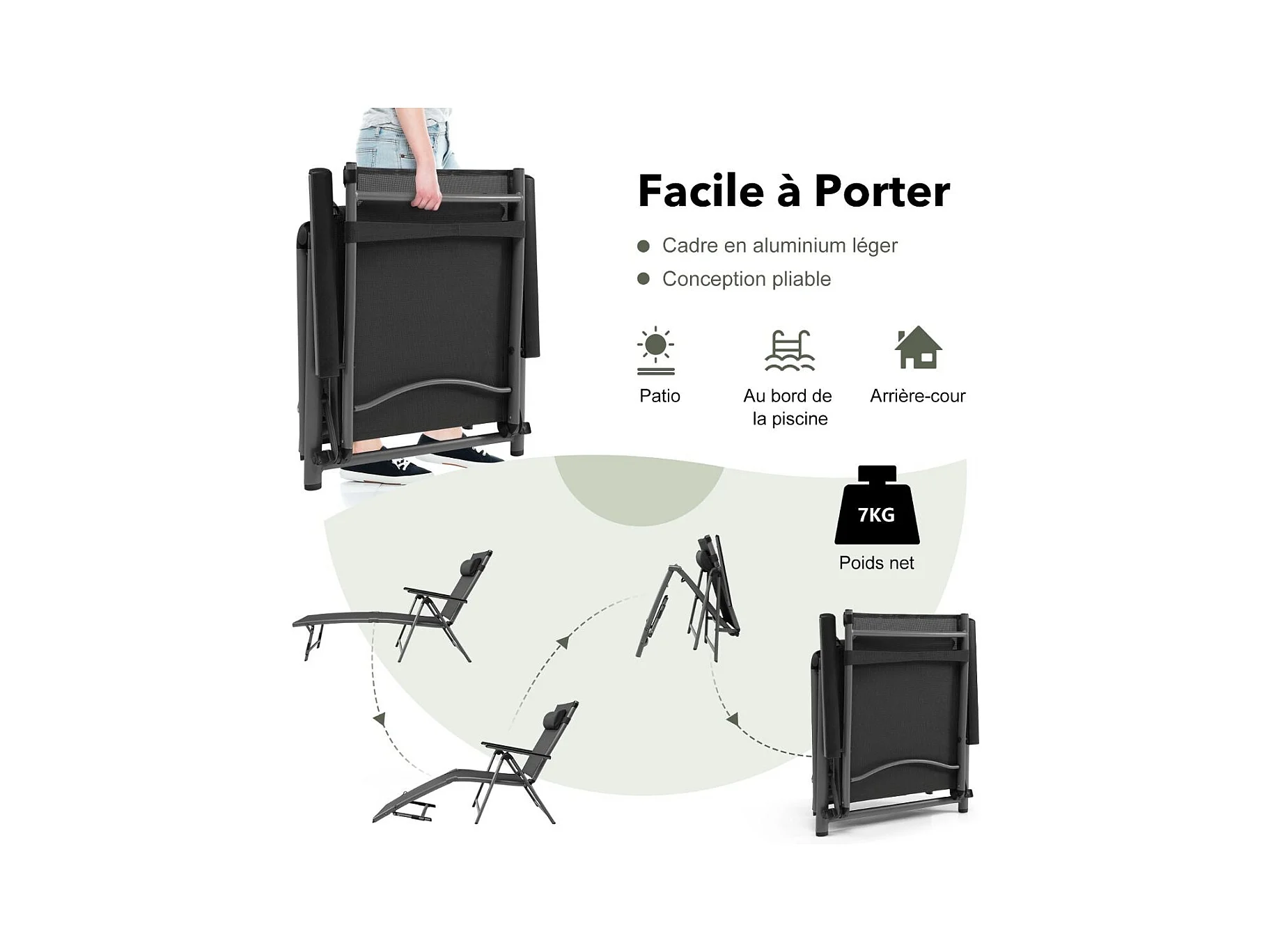 Bain de Soleil, SucceBuy Ensemble de Chaises Longues D'extérieur (2 Pièces), Gris Foncé - Réglables et Pliables