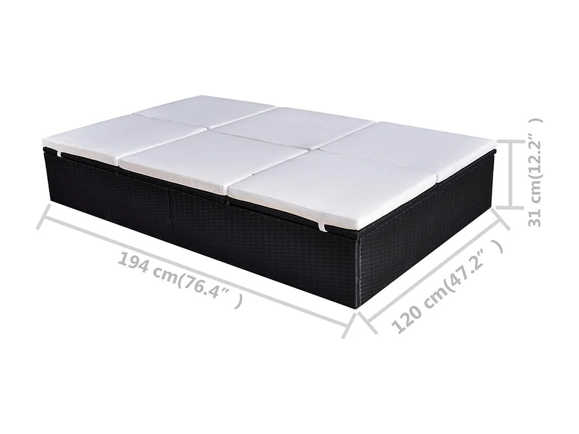 Chaise longue double avec coussin Résine tressée Noir