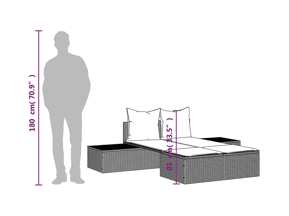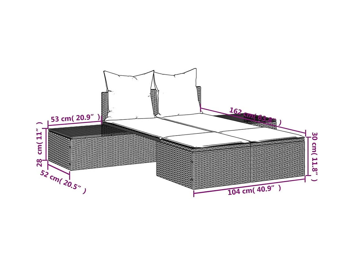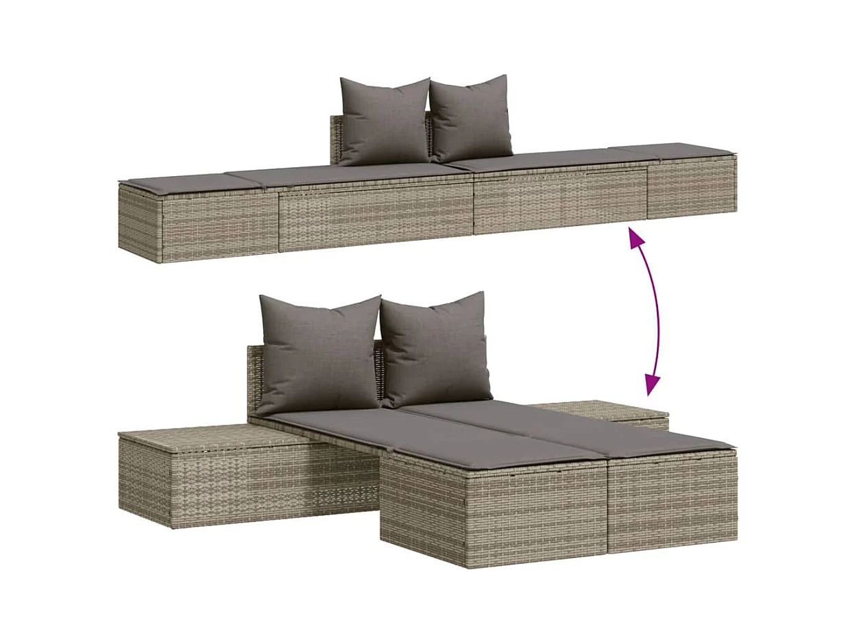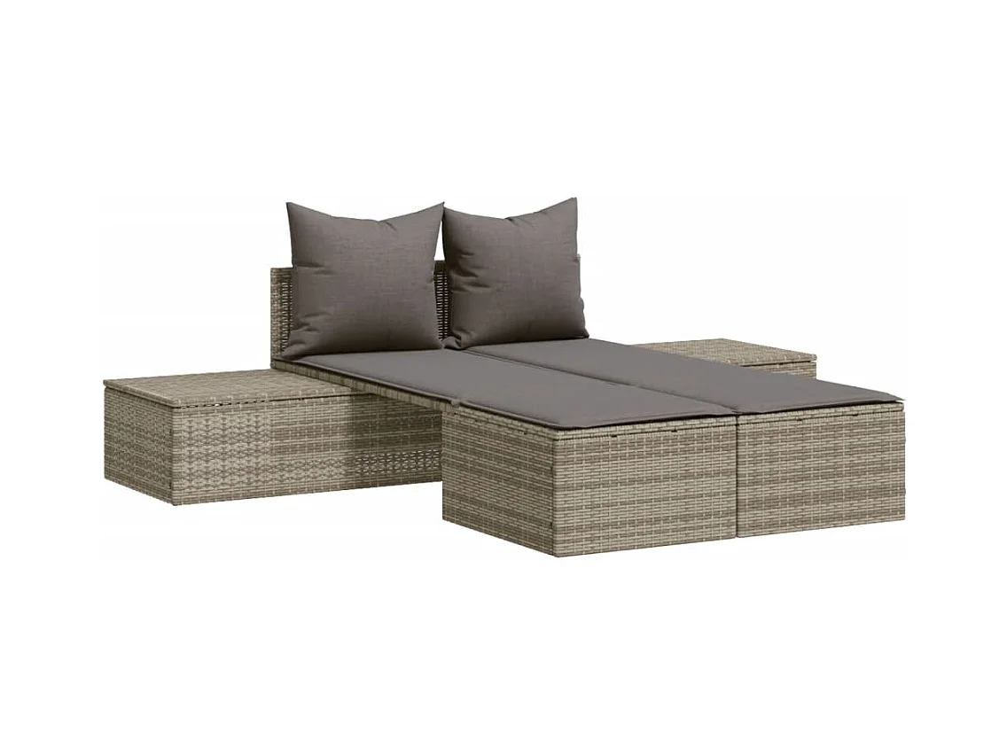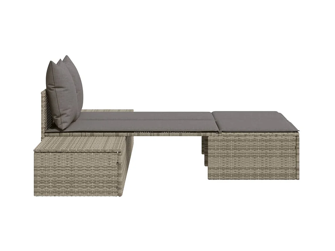 Chaise longue avec coussin gris 60x199x42 cm résine tressée