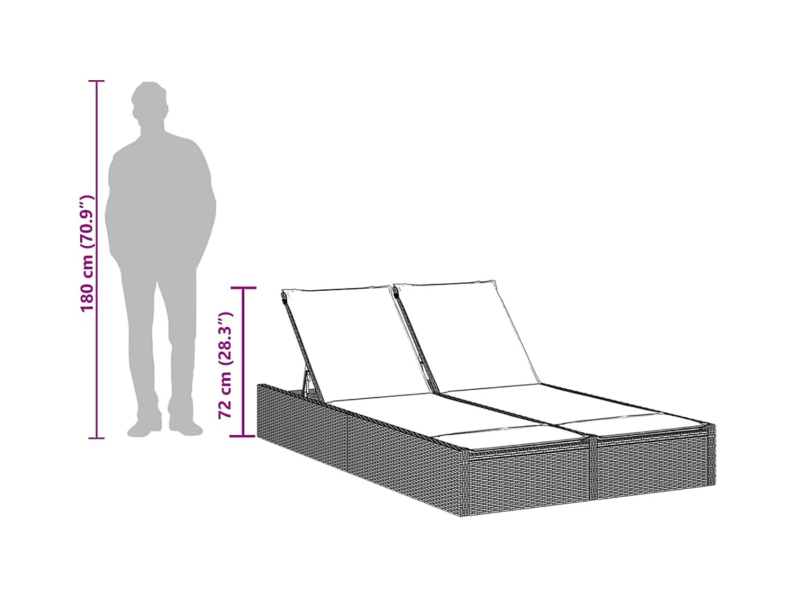 Chaise longue avec coussin gris 60x205x73 cm résine tressée