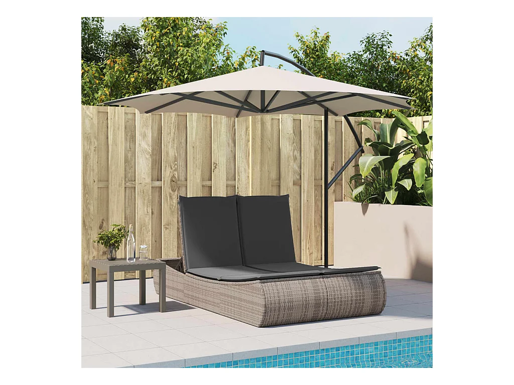 Fauteuil suspendu 2 places en résine tressée - Beige et coussin blanc - VAHINA de MYLIA