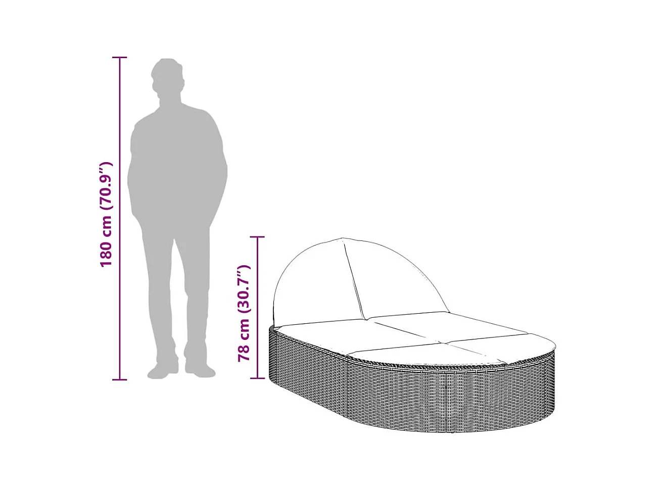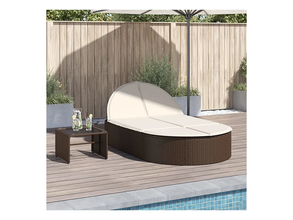 Chaise longue avec coussin marron 63x200x81 cm résine tressée