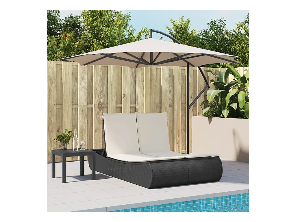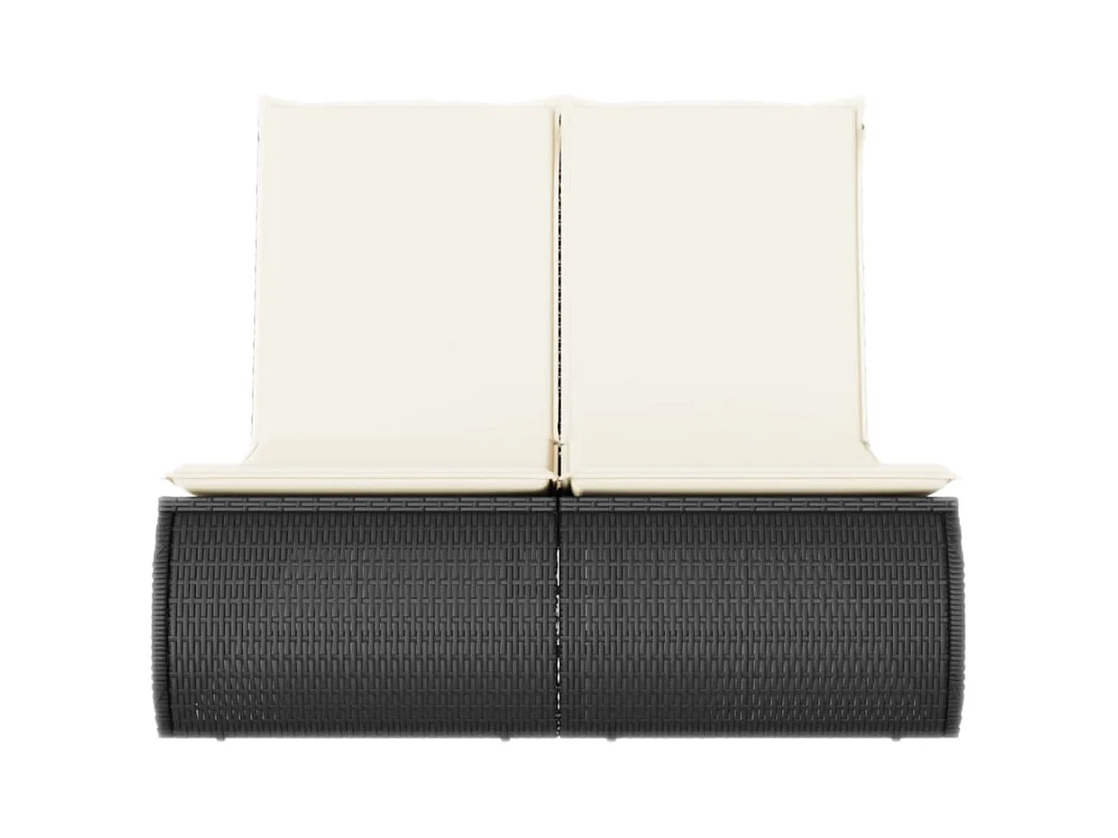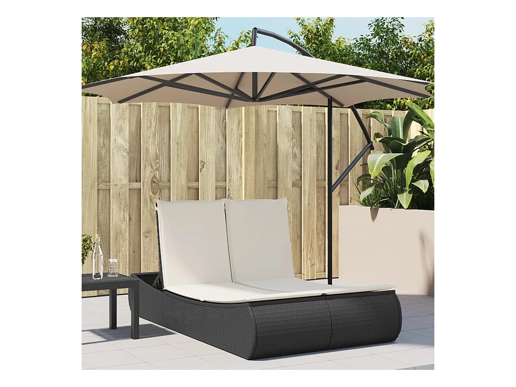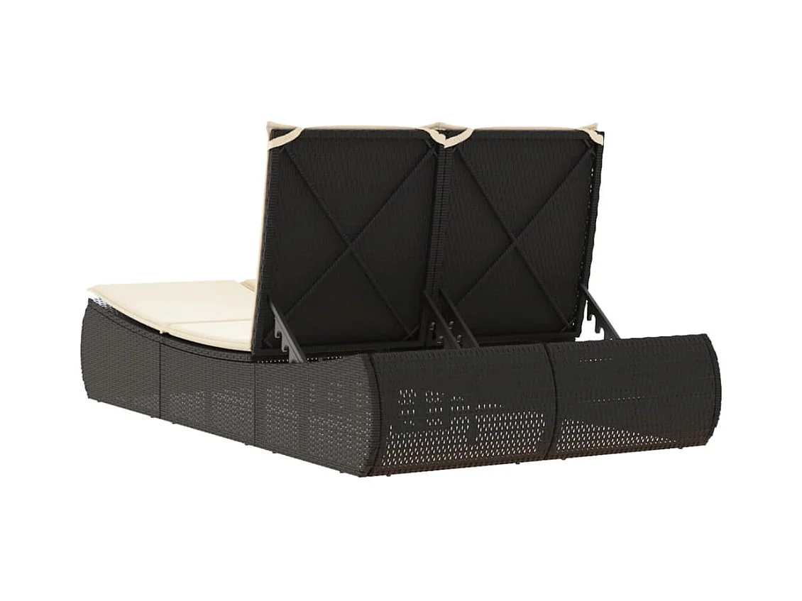 Chaise longue double avec coussins noir résine tressée