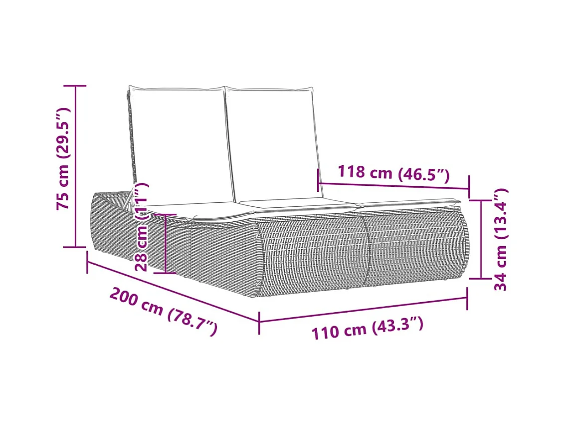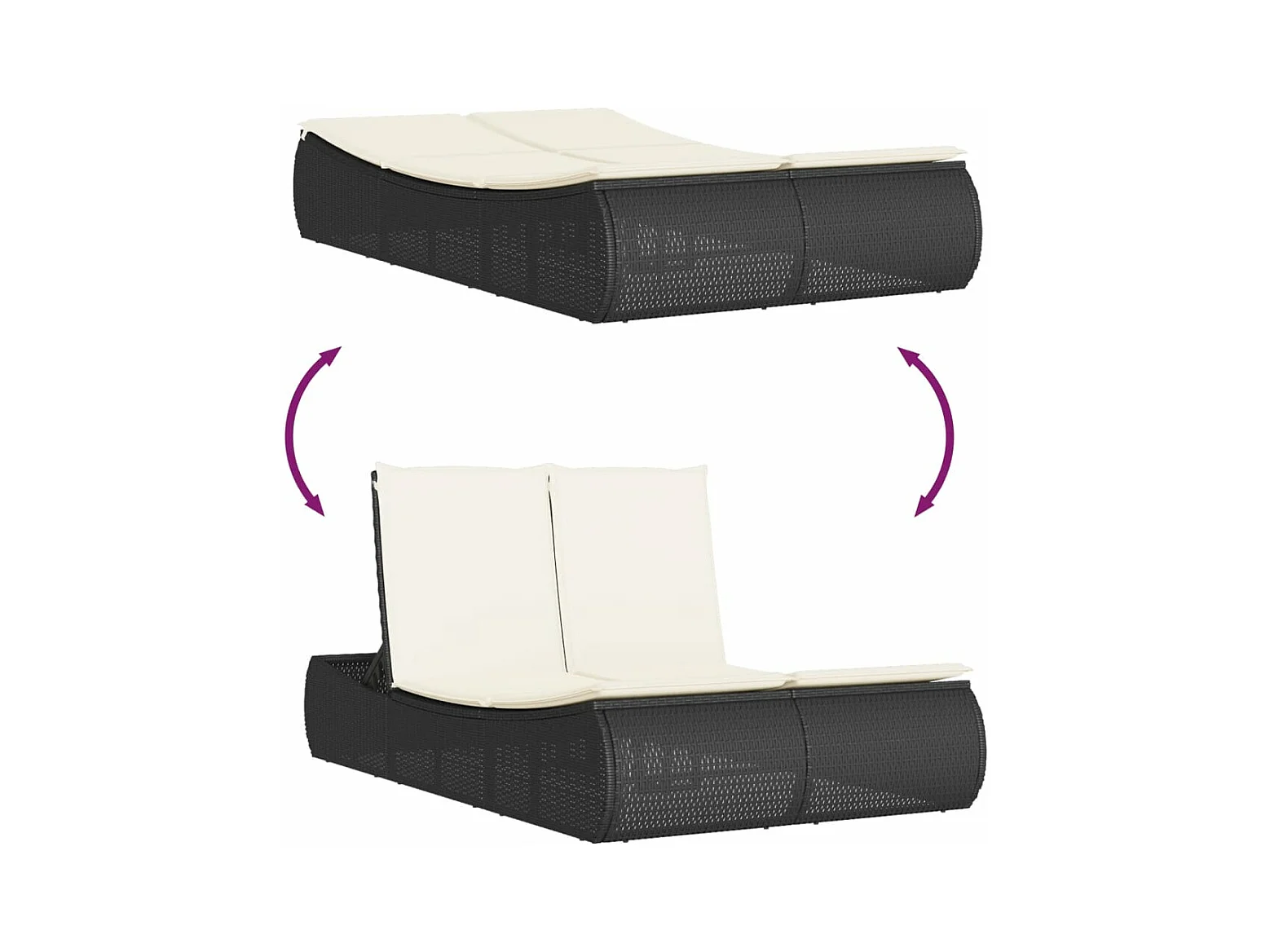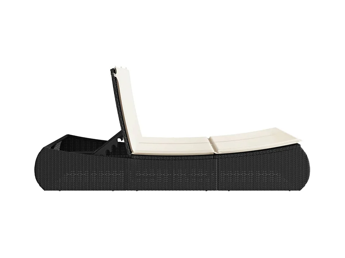 Chaise longue double avec coussins noir résine tressée