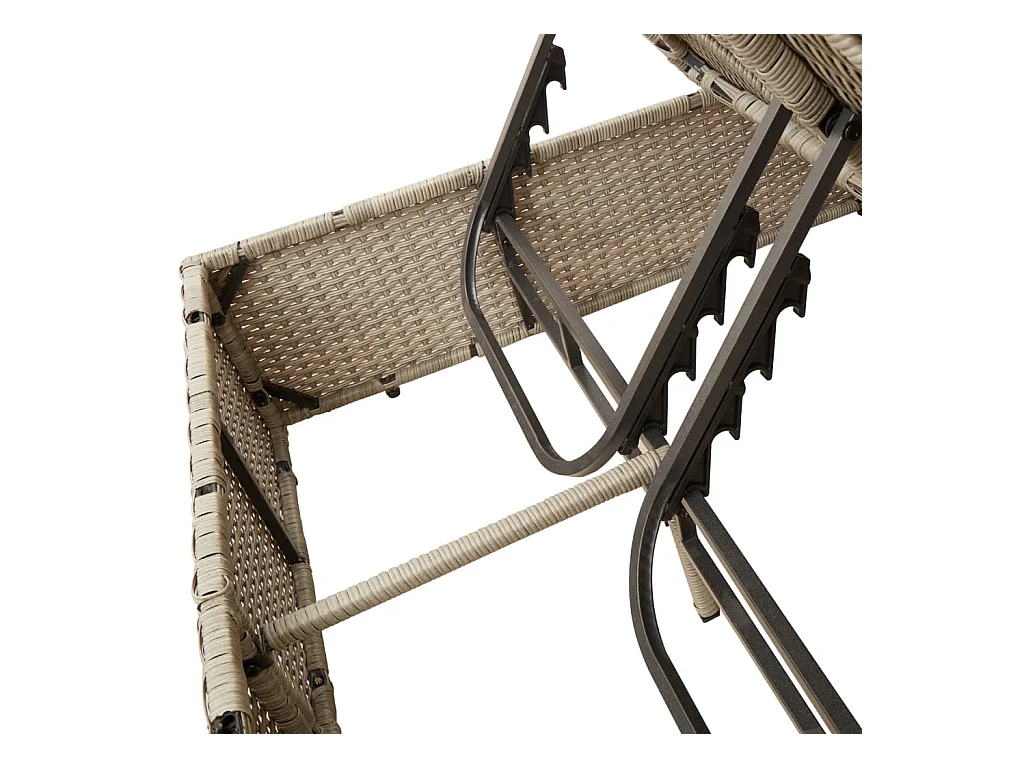 Chaise longue et coussin gris clair 55x199x50 cm résine tressée