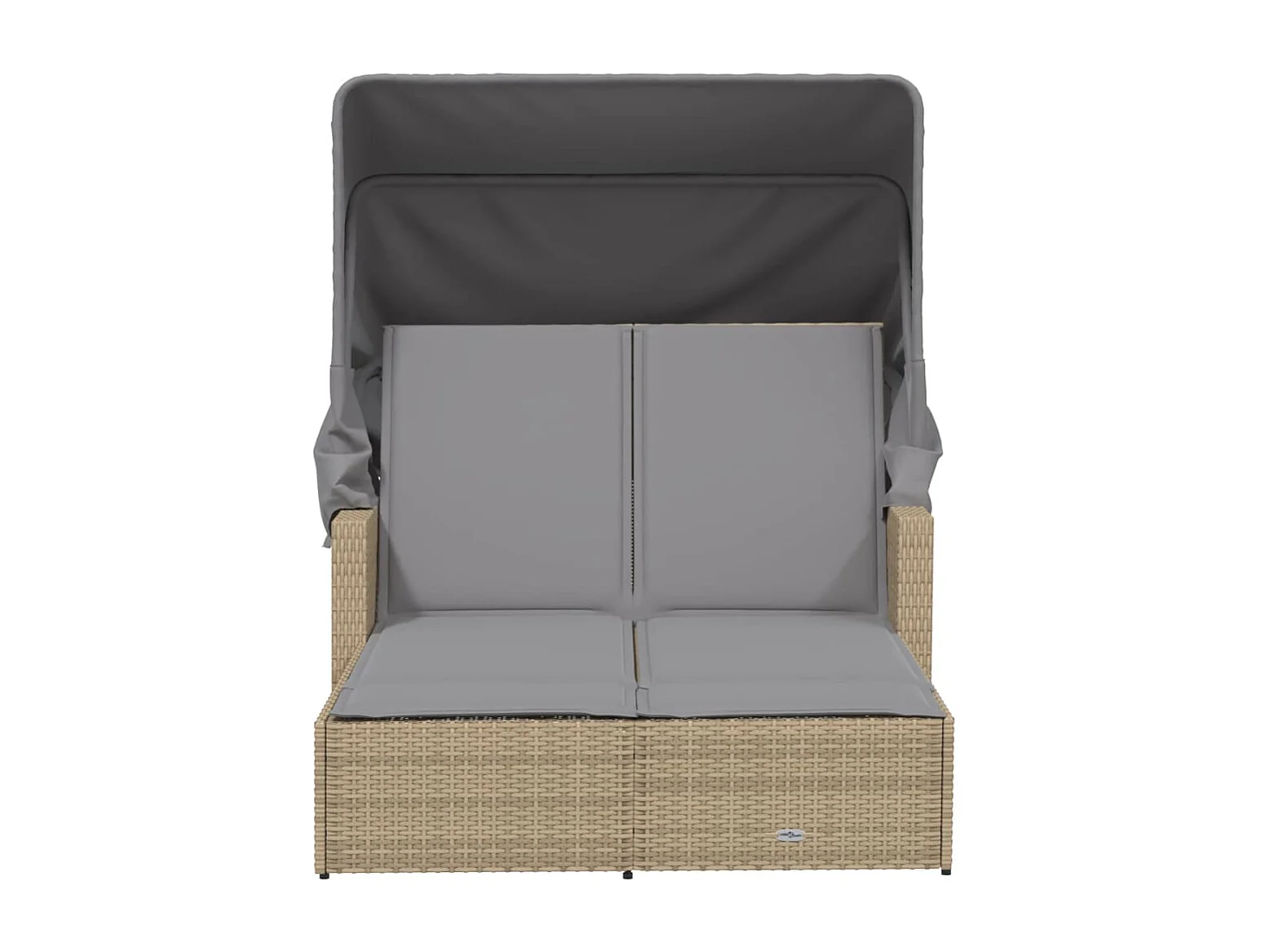 Chaise longue double et auvent et coussins mélange beige rotin
