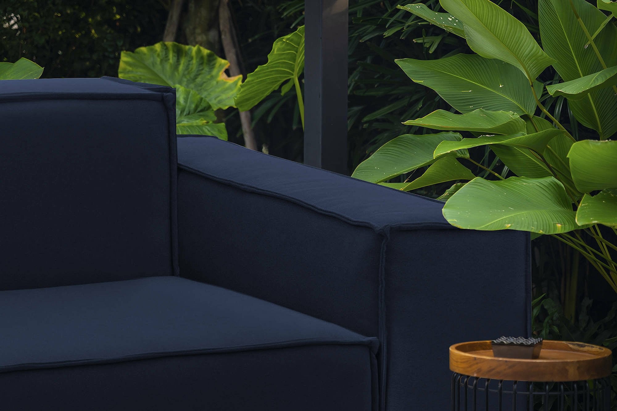 Fauteuil Emanuela, Fauteuil de salon, 100% Made in Italy, Fauteuil relaxant en tissu rembourré, 140x95h70 cm, Bleu