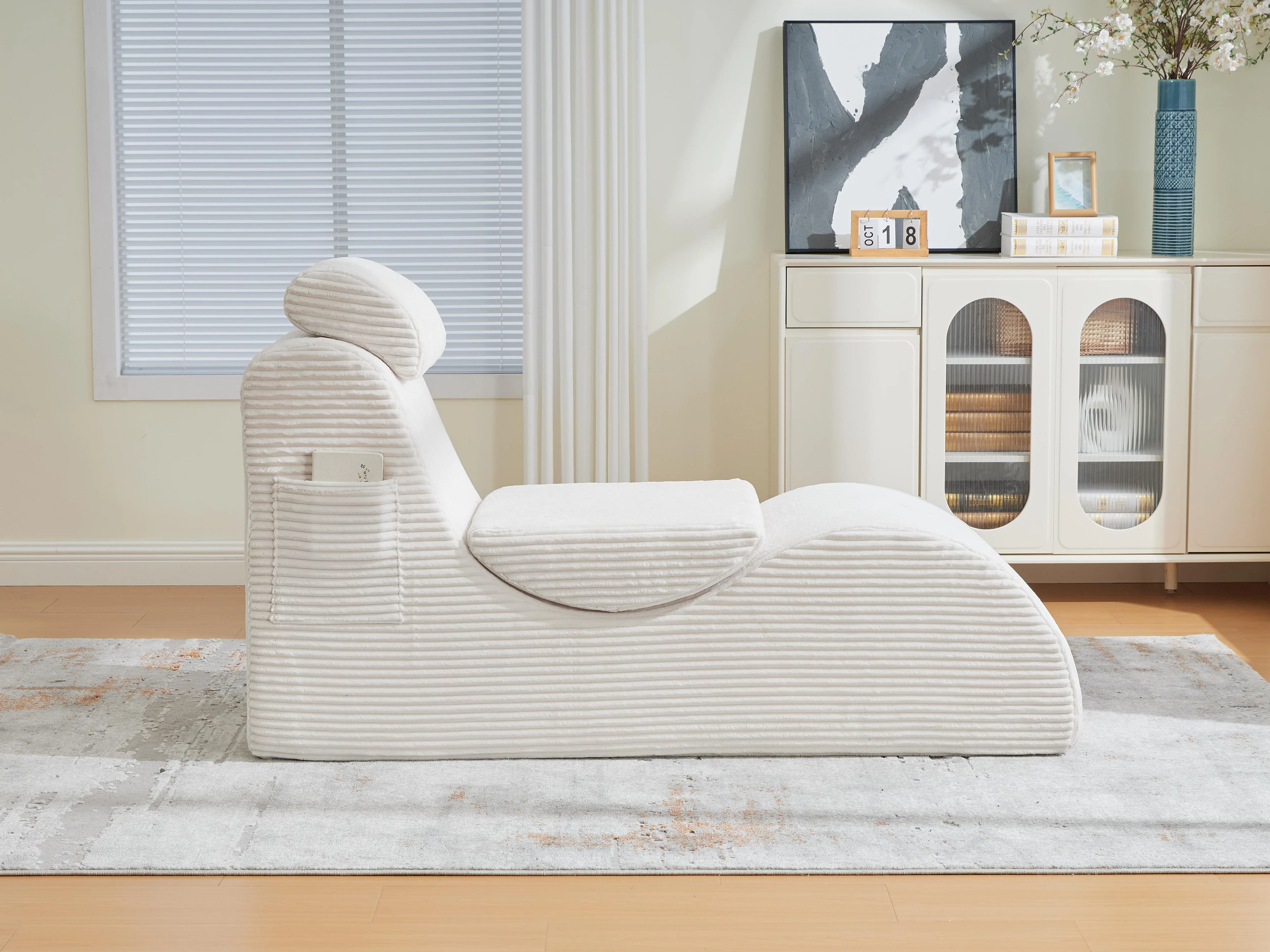 Chaise Longue en Corde Côtelée - Confort Ergonomique - Coussin Amovible 2-en-1 - Support 200kg - Beige - Idéale Salon & Bureau