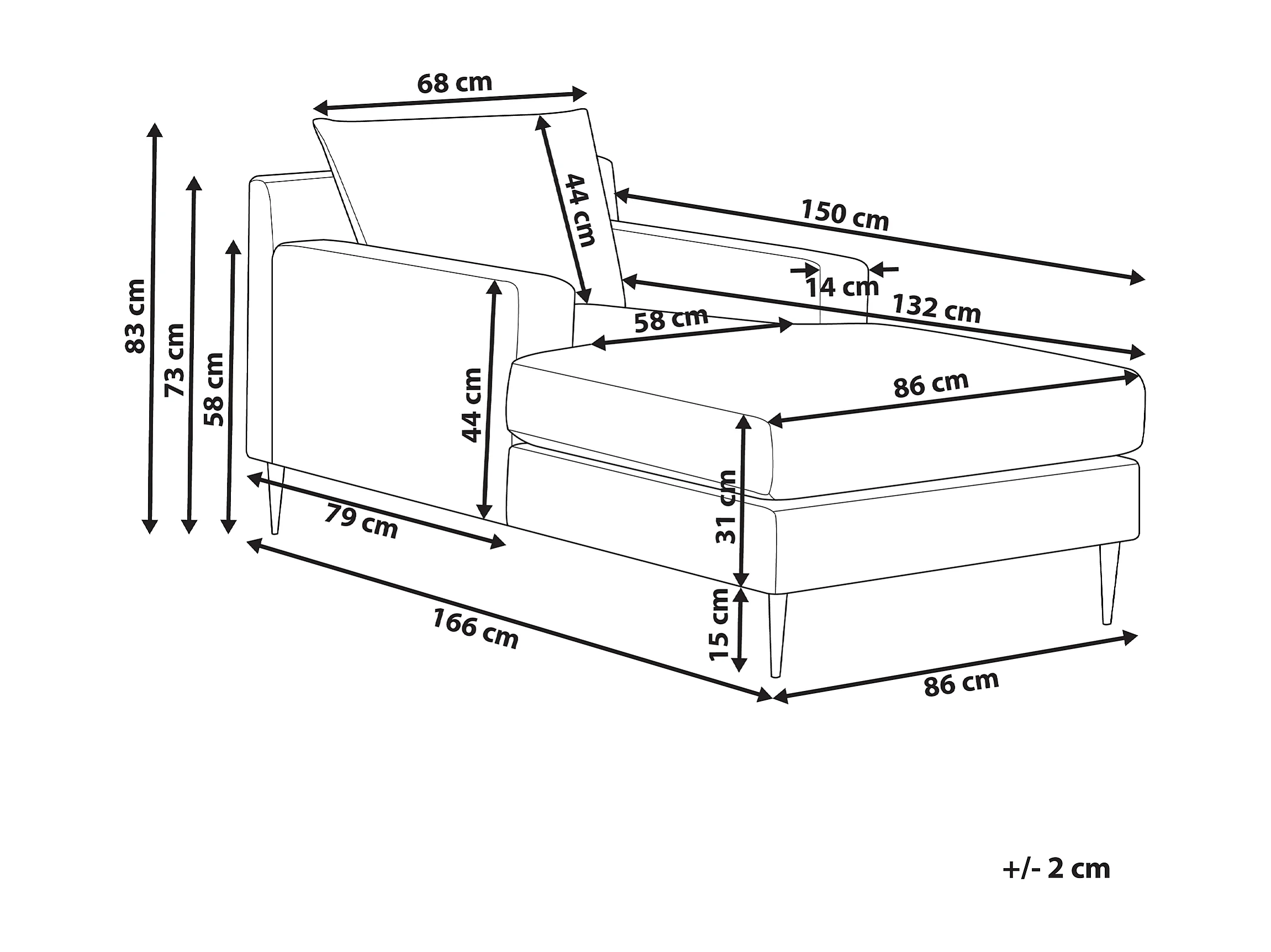 Chaise longue GUERET Velours Beige