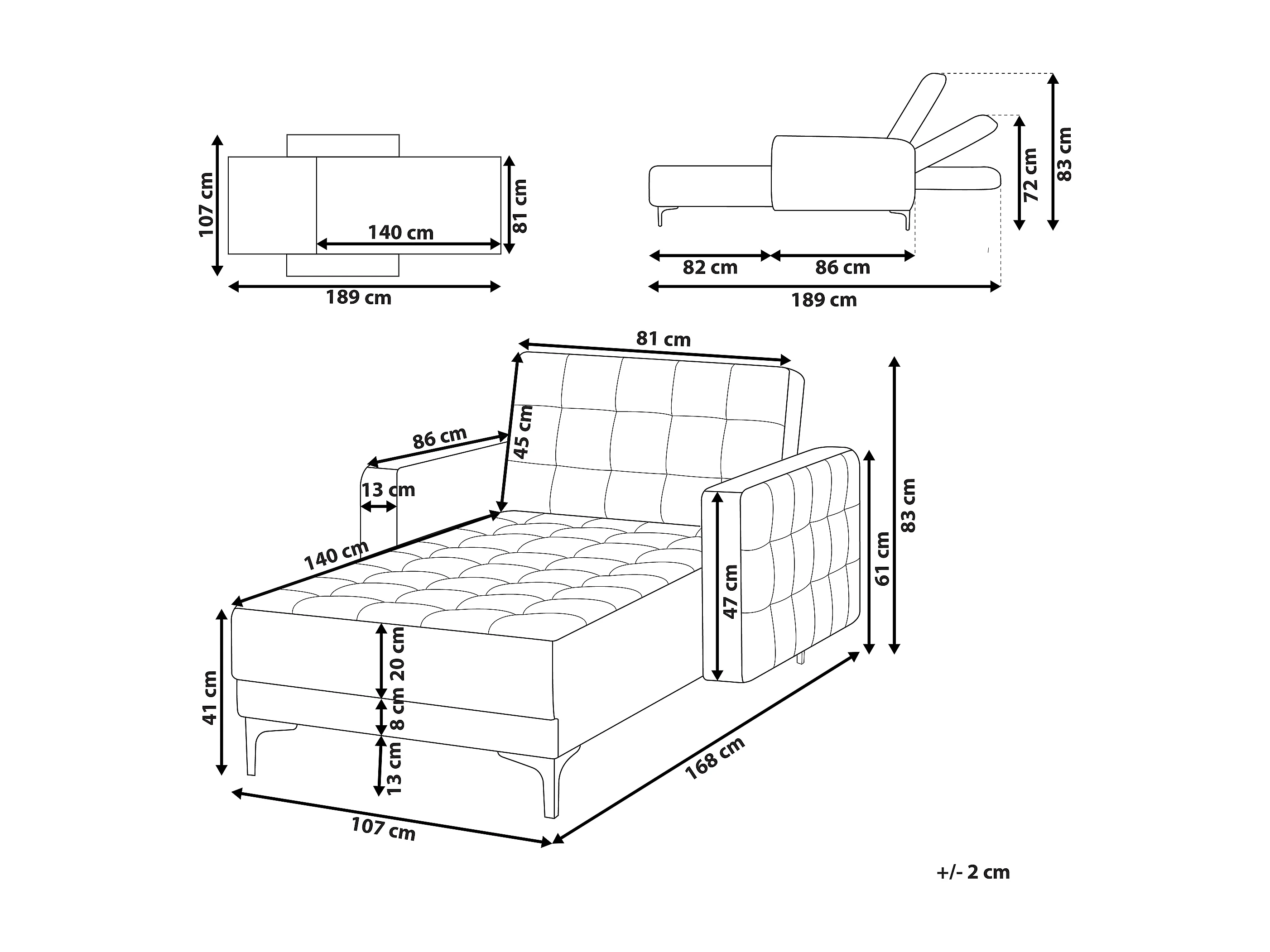 Chaise longue ABERDEEN Velours Vert