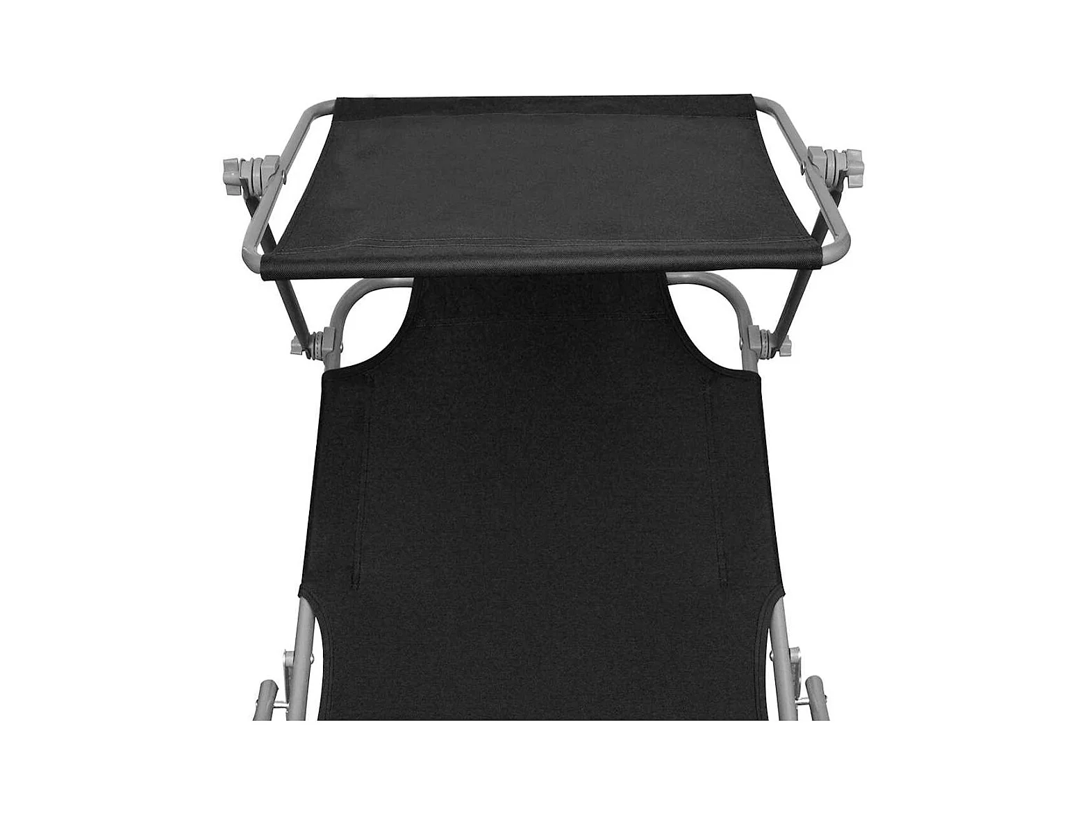 Chaise longue pliable avec toit Aluminium et textilène Noir