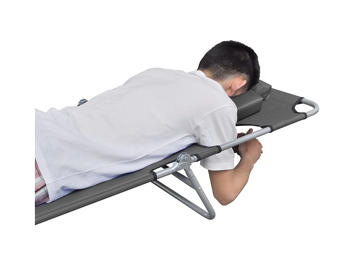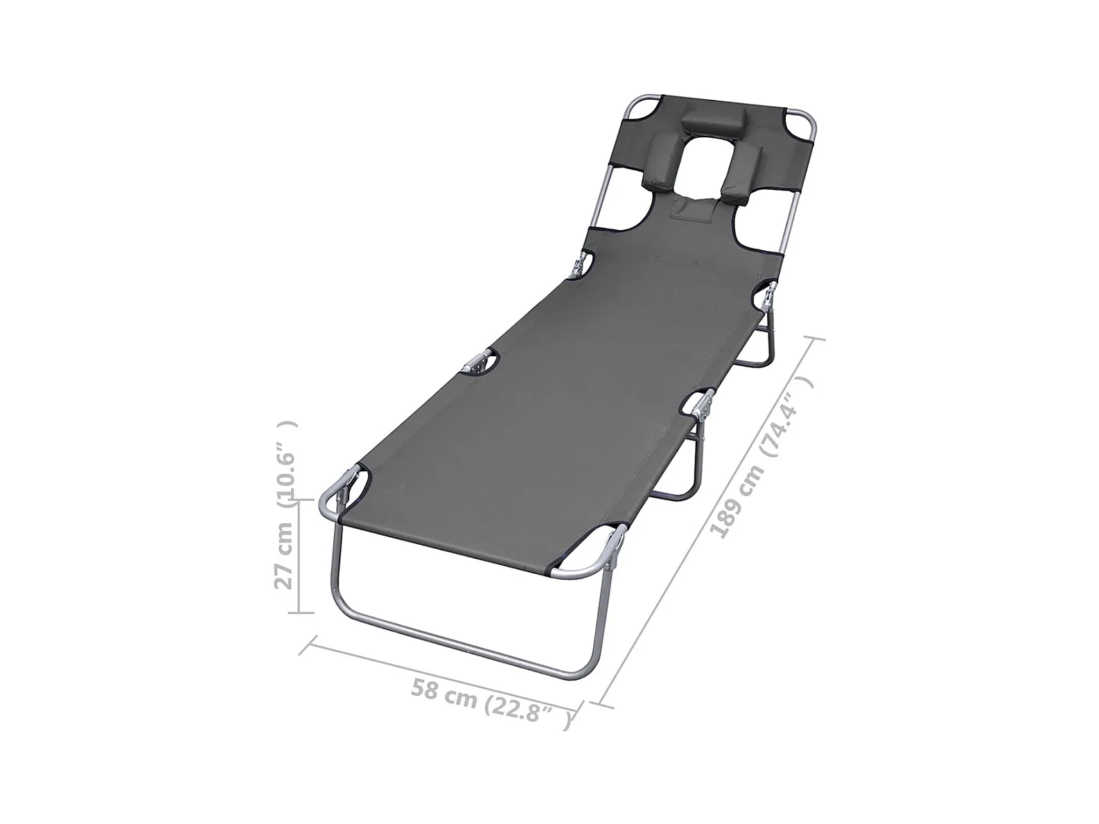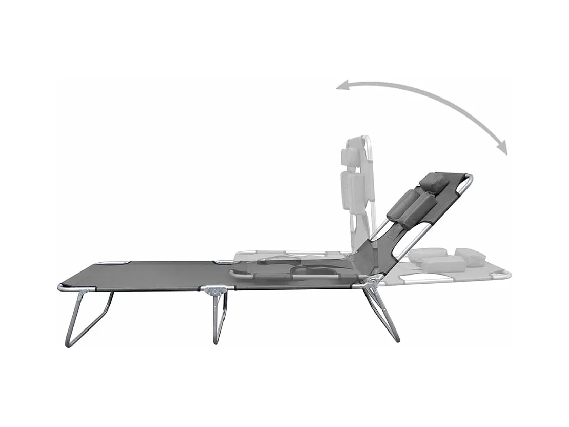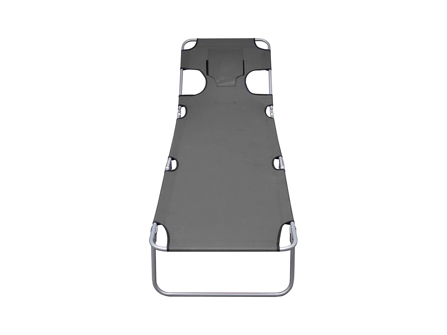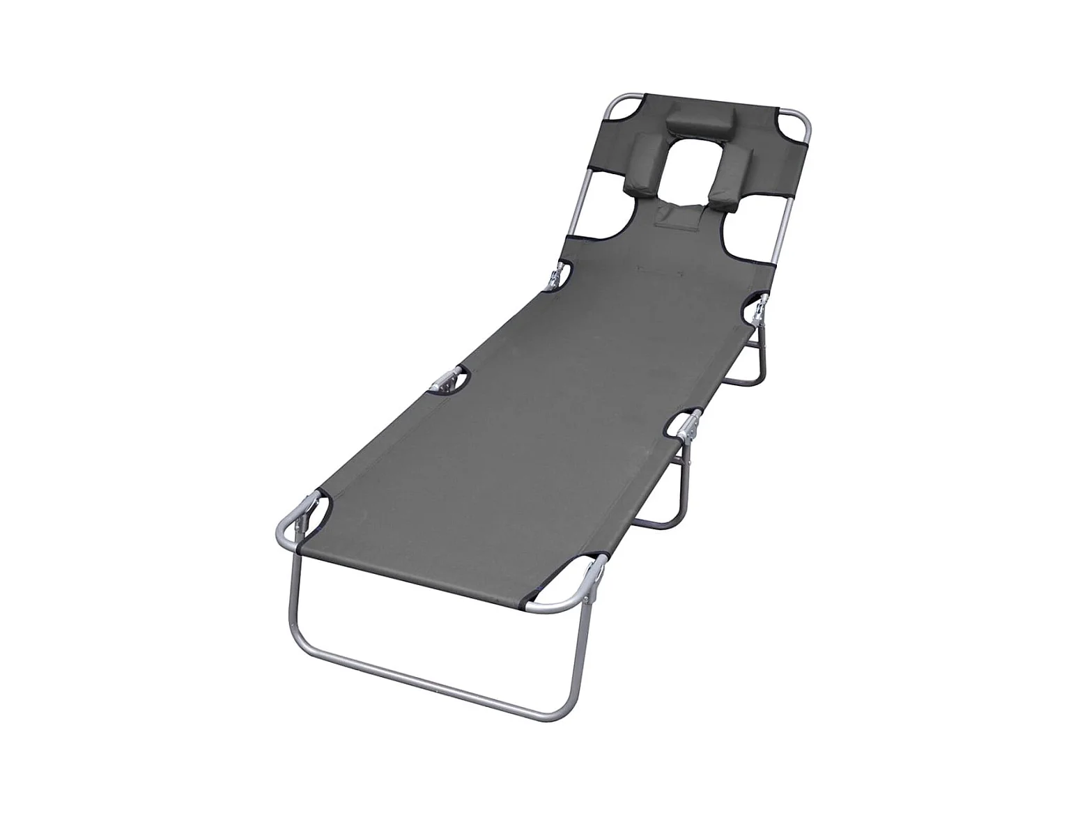 Chaise longue pliable et coussin de tête Dossier réglable Gris