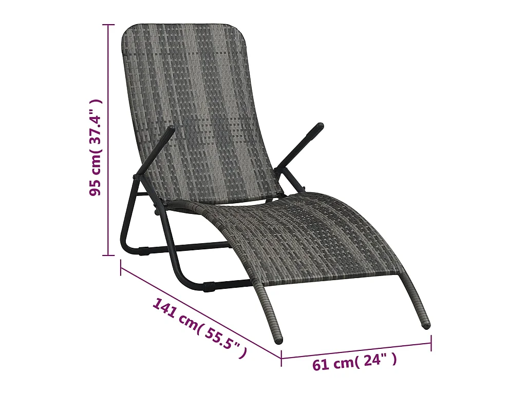 Chaise longue avec coussin gris 201x55x62 cm résine tressée