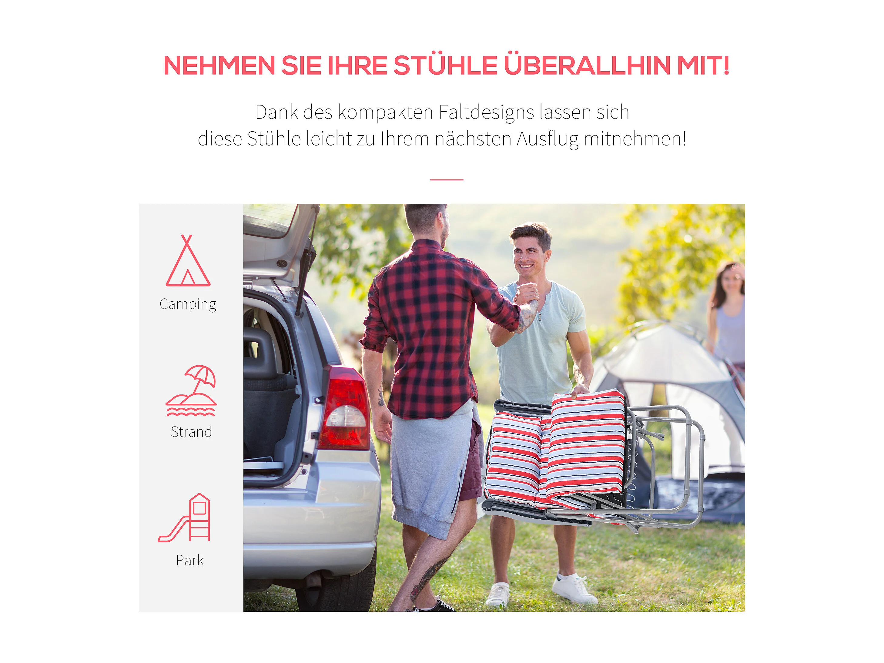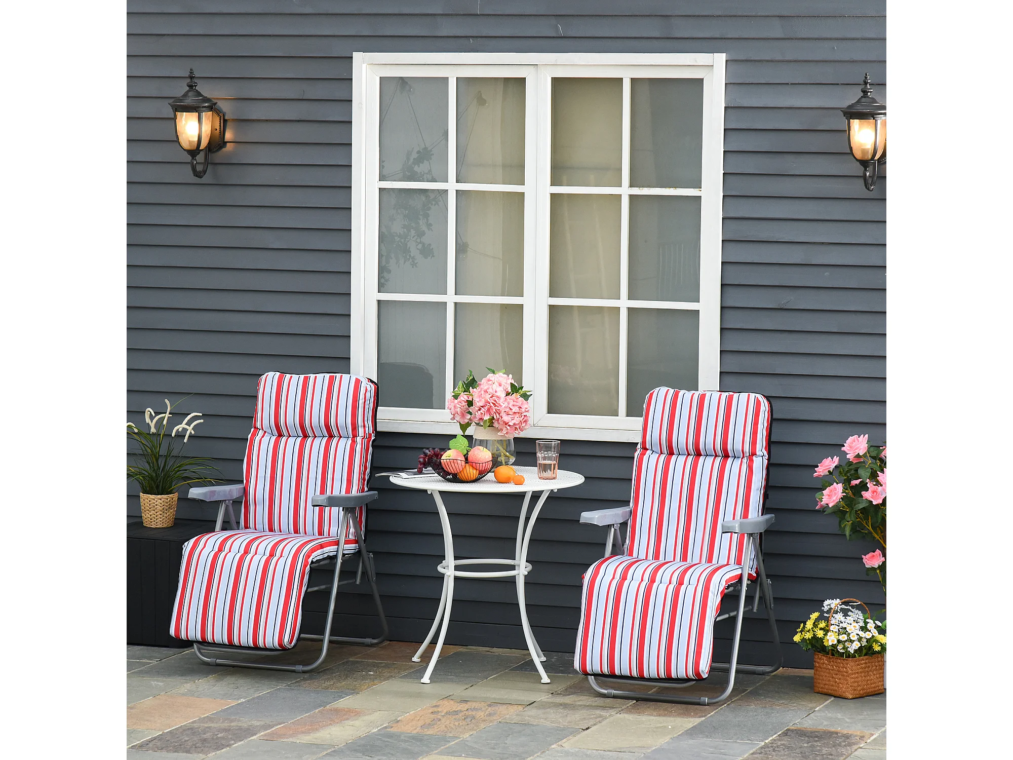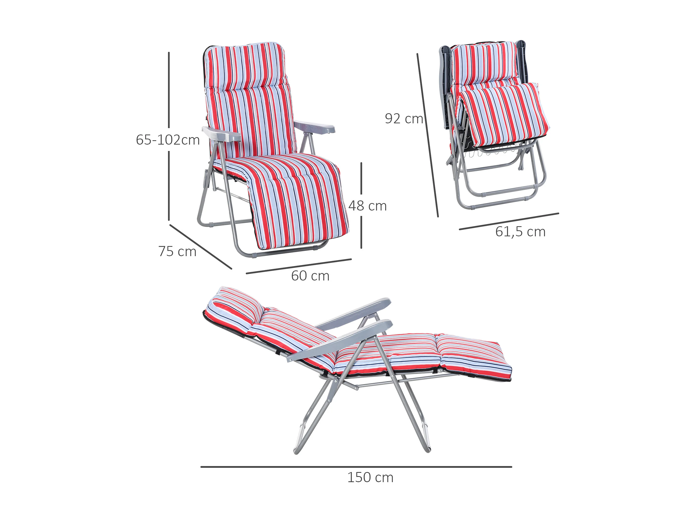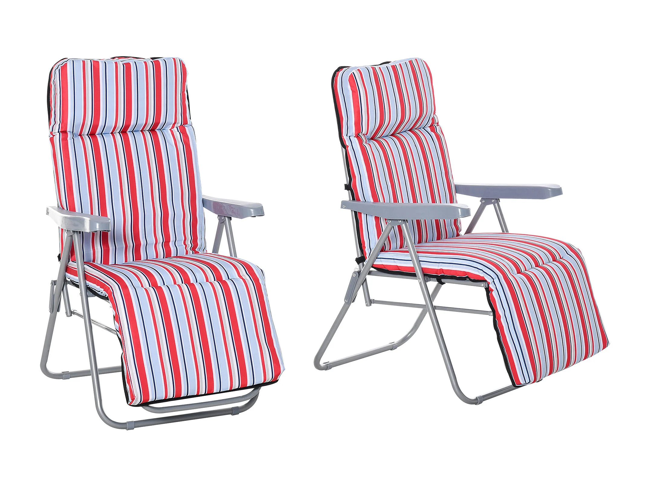 Chaise longue pliante 2 pièces, acier et polyester, rouge, dossier réglable (60x75x65-102 cm)