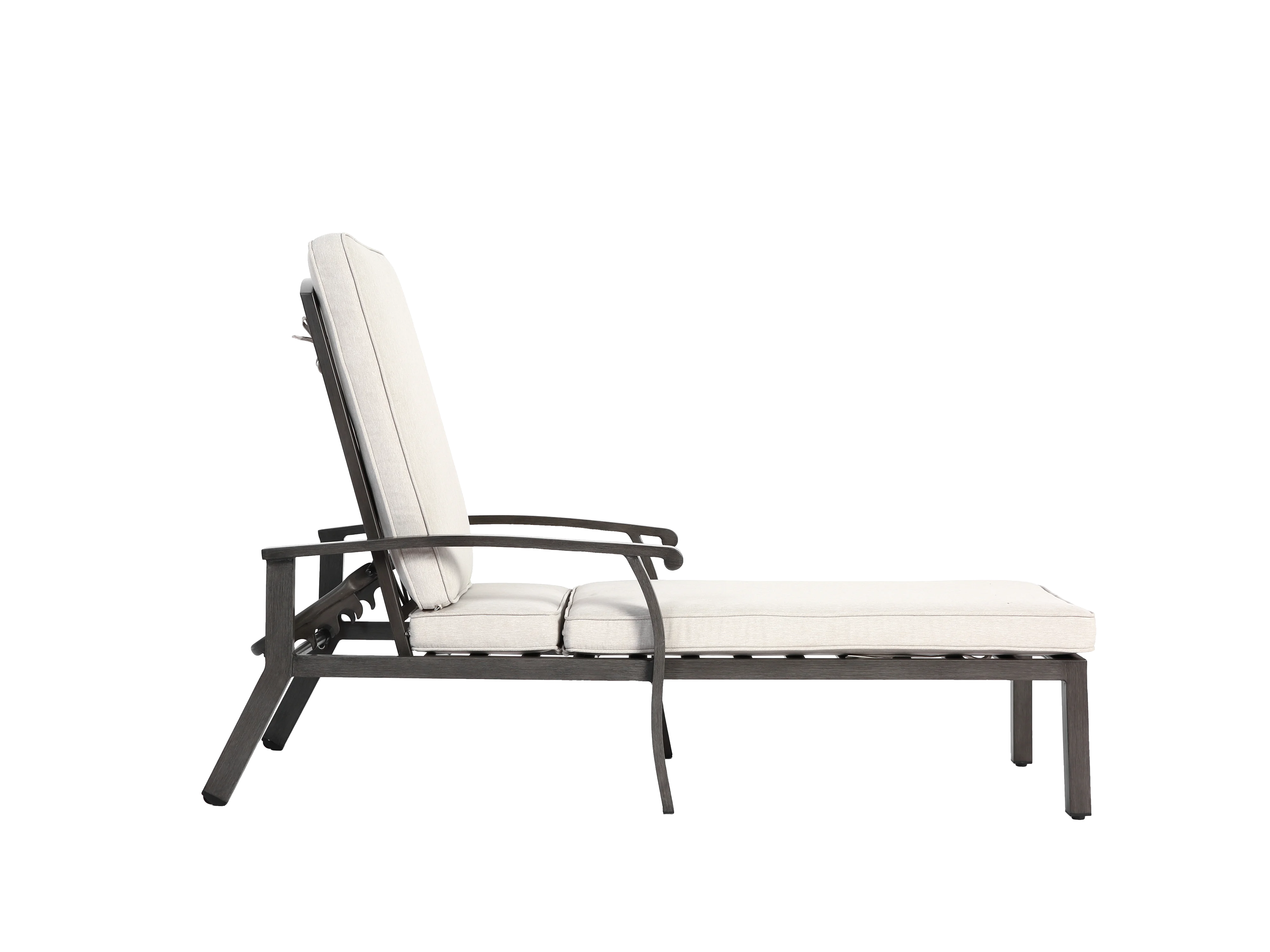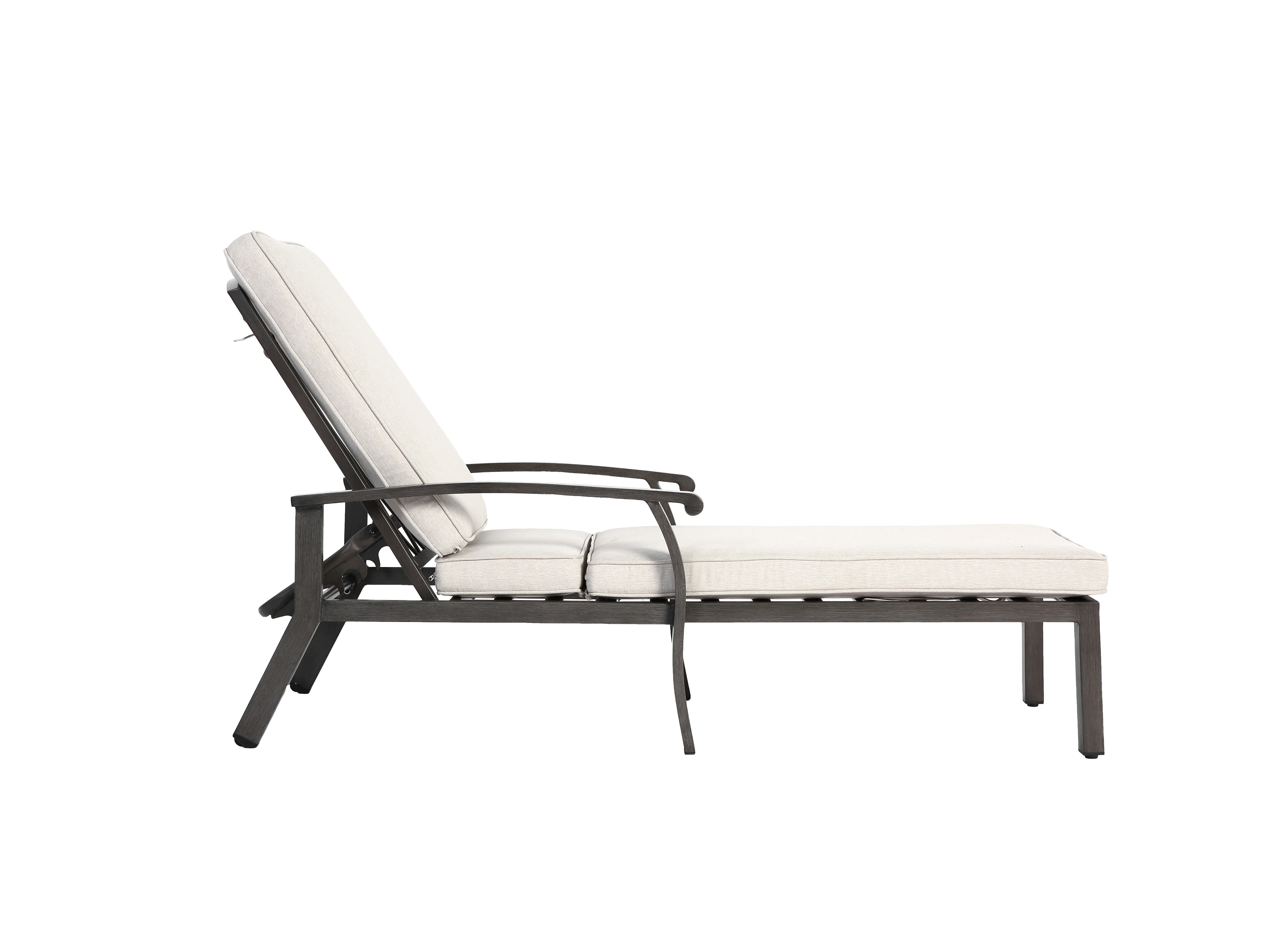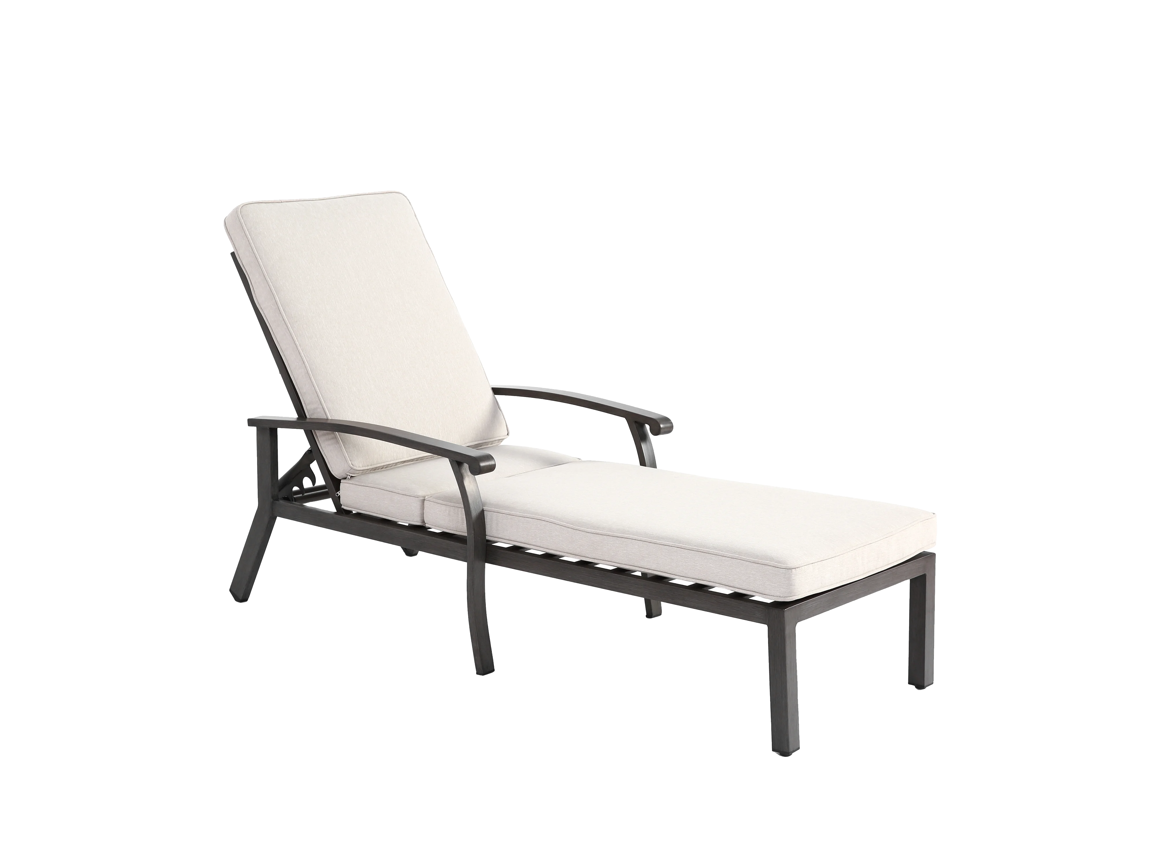 Chaise longue réglable pour patio, résistante à la rouille, aluminium, avec coussin en coton imperméable, beige (204x58x100/30 cm)