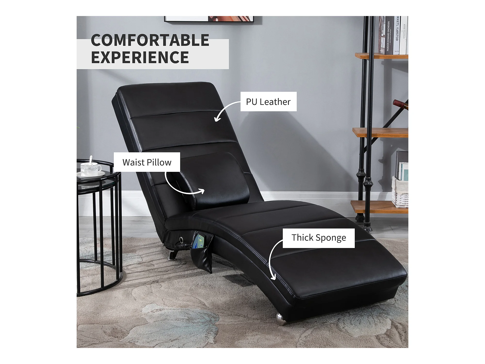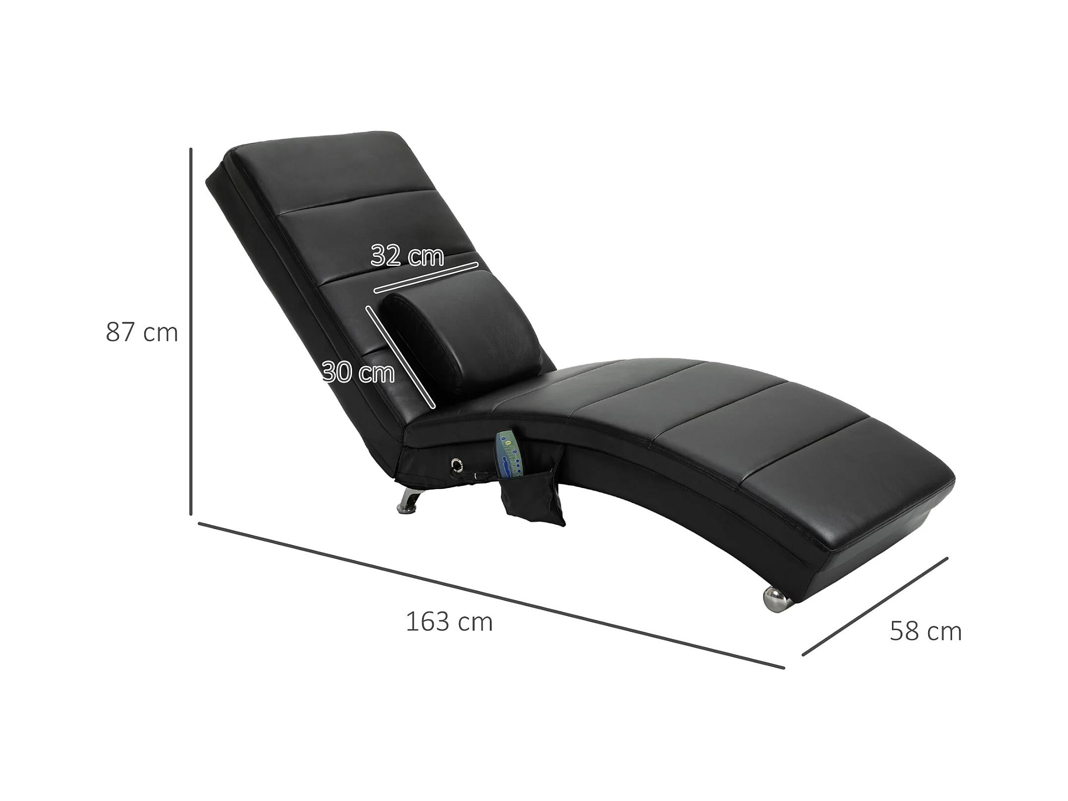 Chaise longue relax avec massage 8 points, simili cuir, télécommande, noir (163x58x87cm)