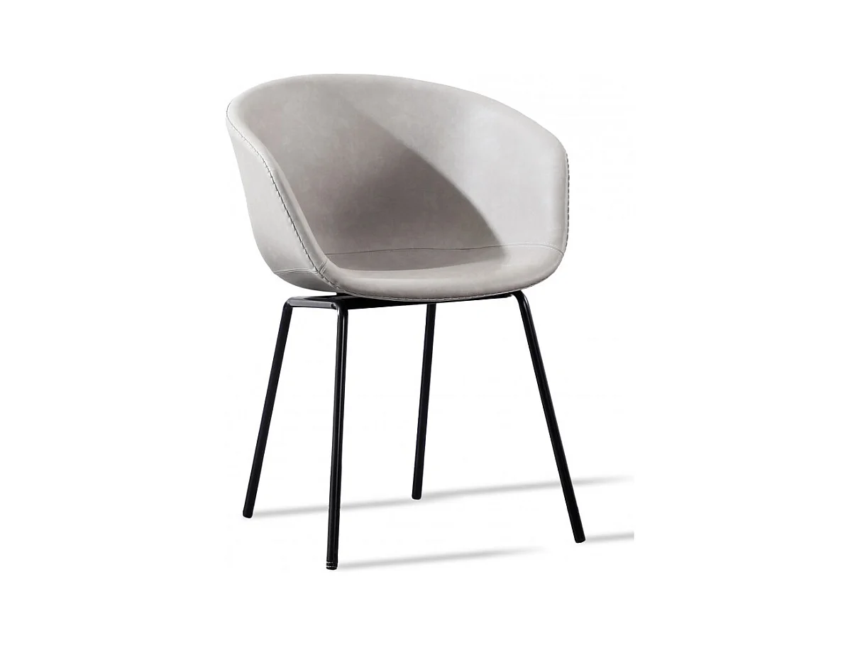 Chaise métal noir laqué et simili cuir gris clair Karry
