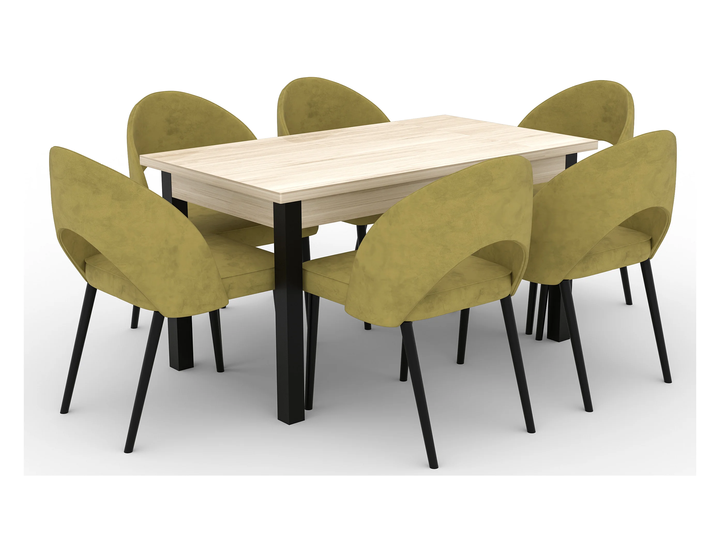 Table à manger 6 personnes placage frêne - Noir - ANTELADA