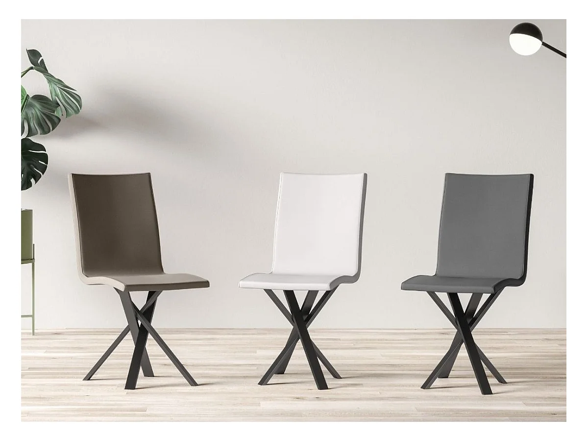 Chaise design simili cuir avec pieds entrelacés anthracite Artemis-Couleur Marron clair