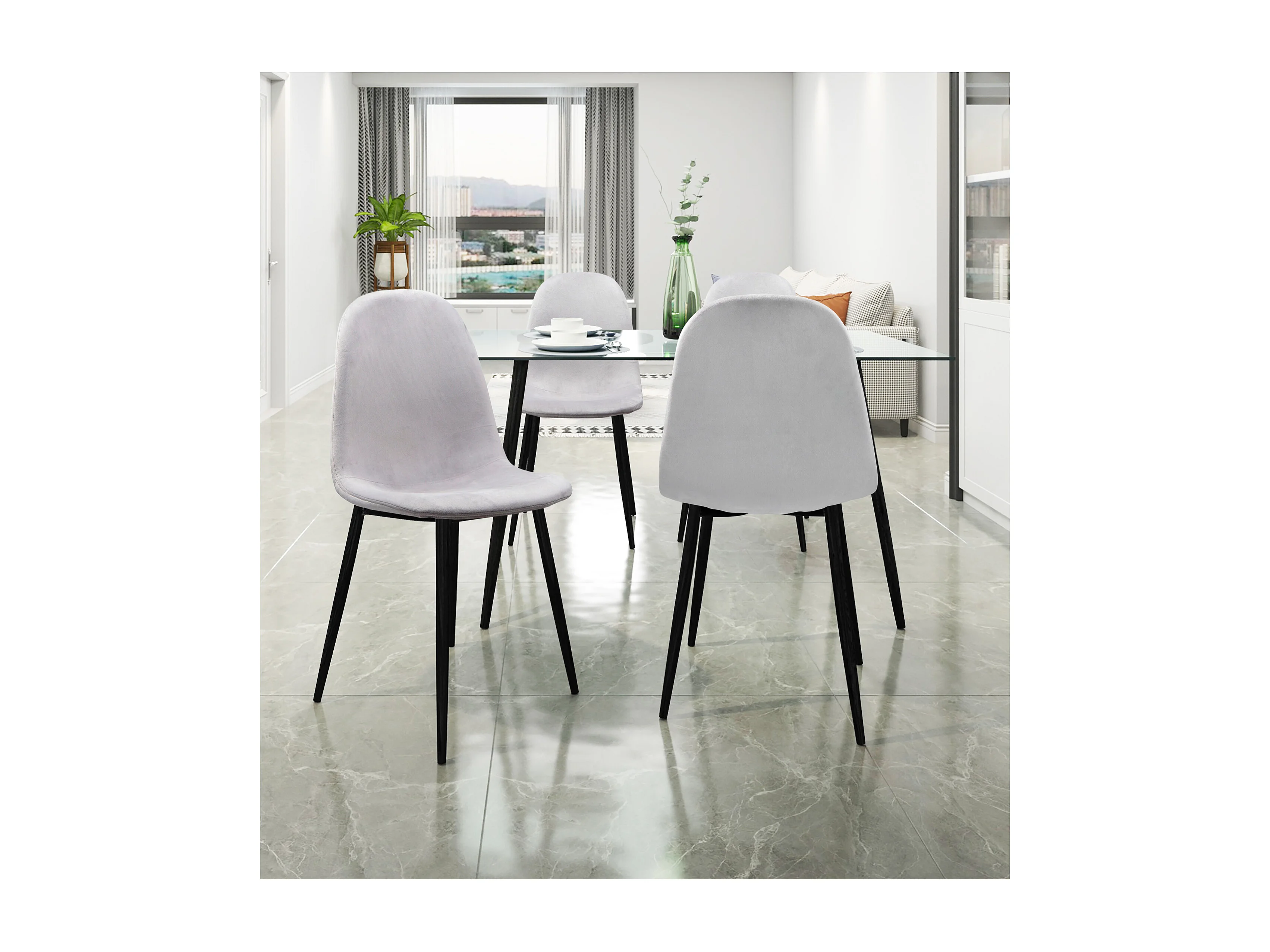 Monza | Chaises 4 Pack en Gris Velours / Pieds Noirs
