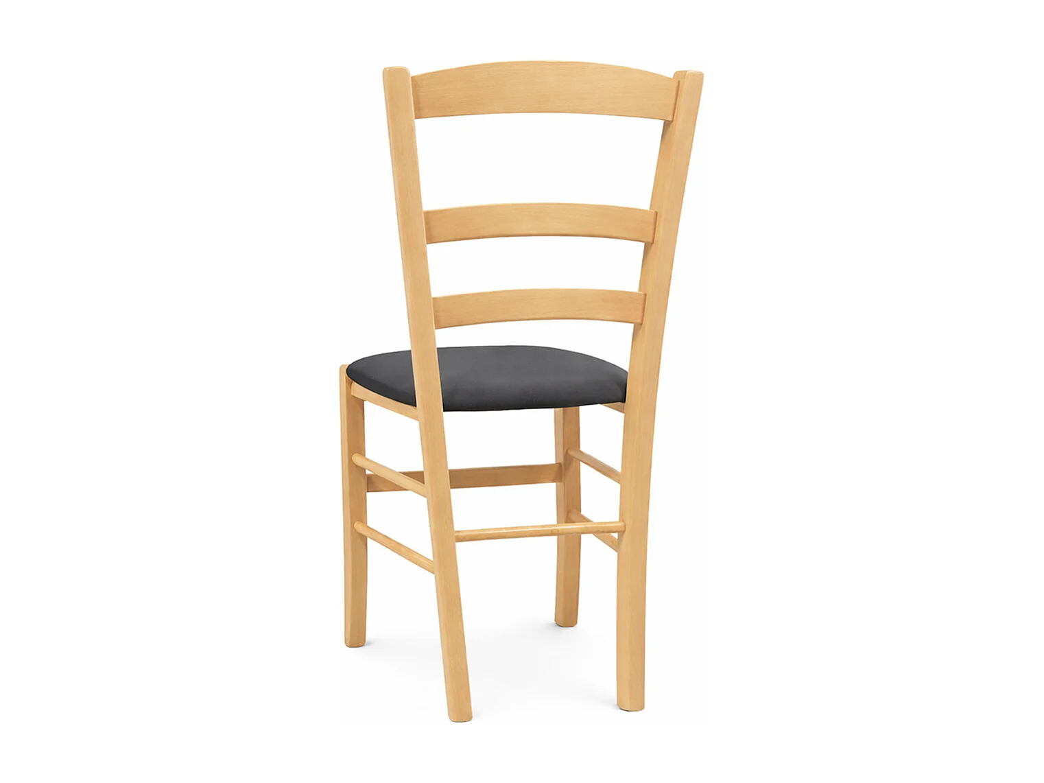 Chaise en bois vénitien naturel avec assise en similicuir gris tourterelle