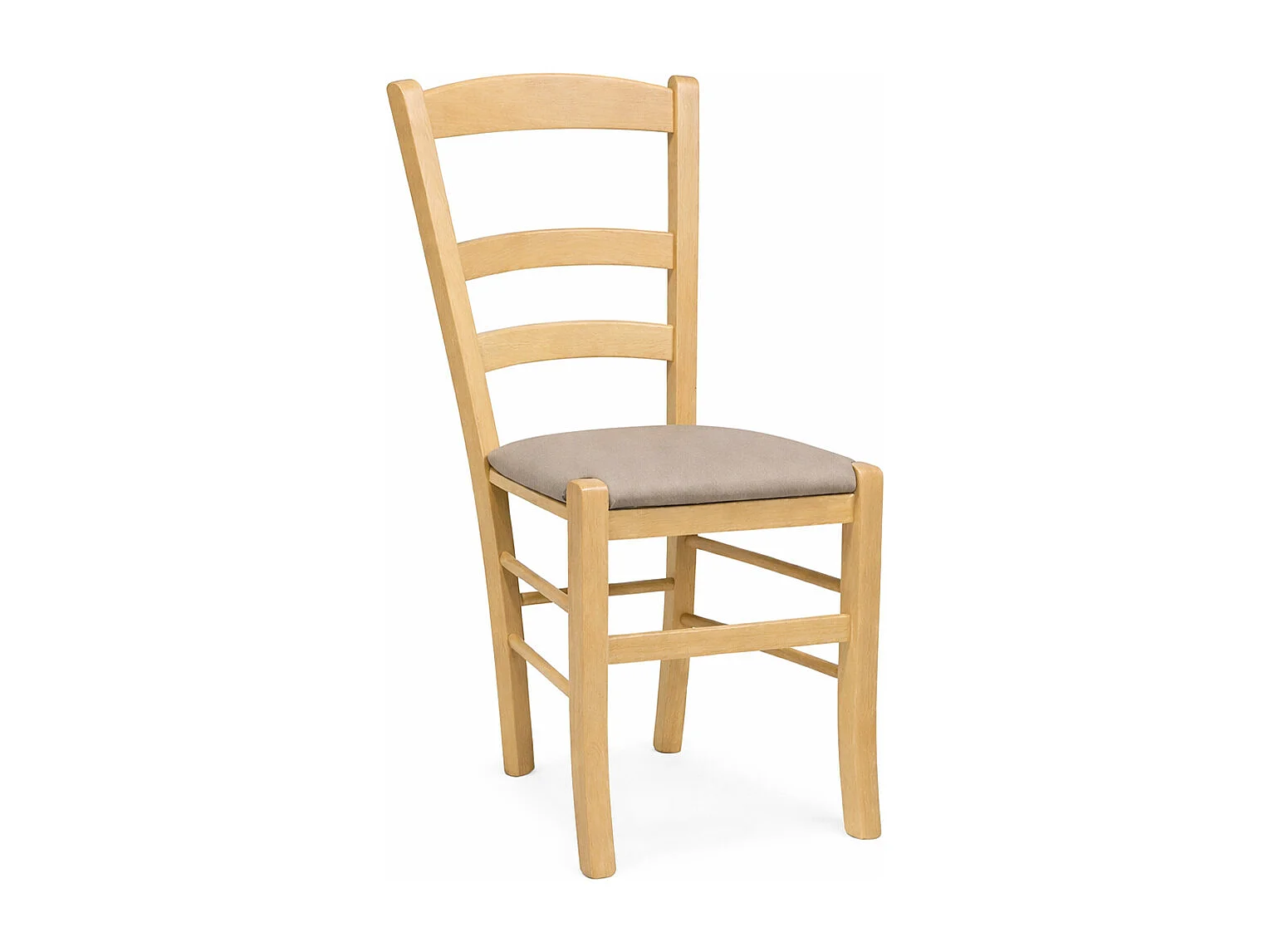 Chaise en bois vénitien naturel avec assise en similicuir gris tourterelle