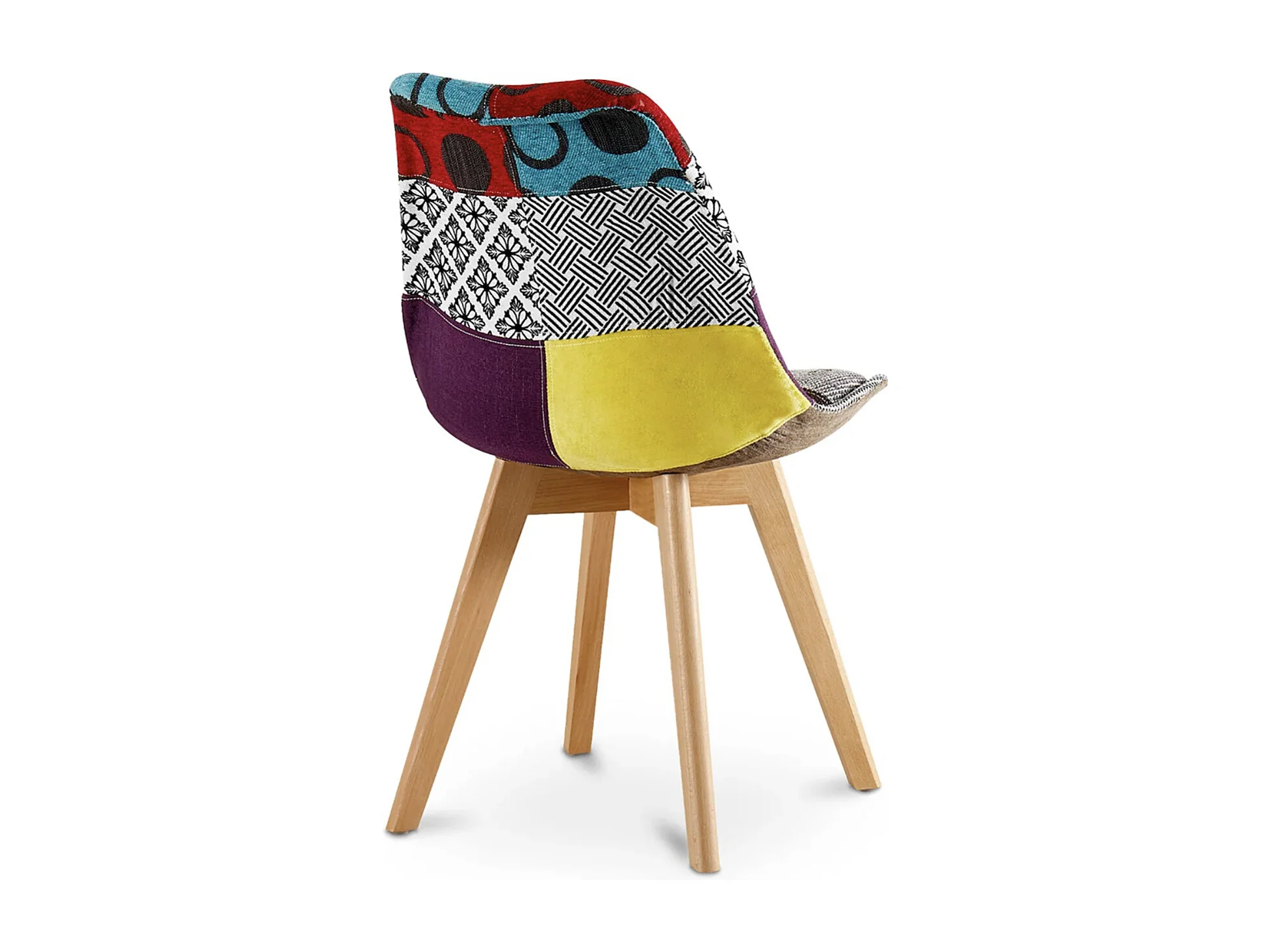 Chaise patchwork multicouleurs et pieds hêtre naturel Asko