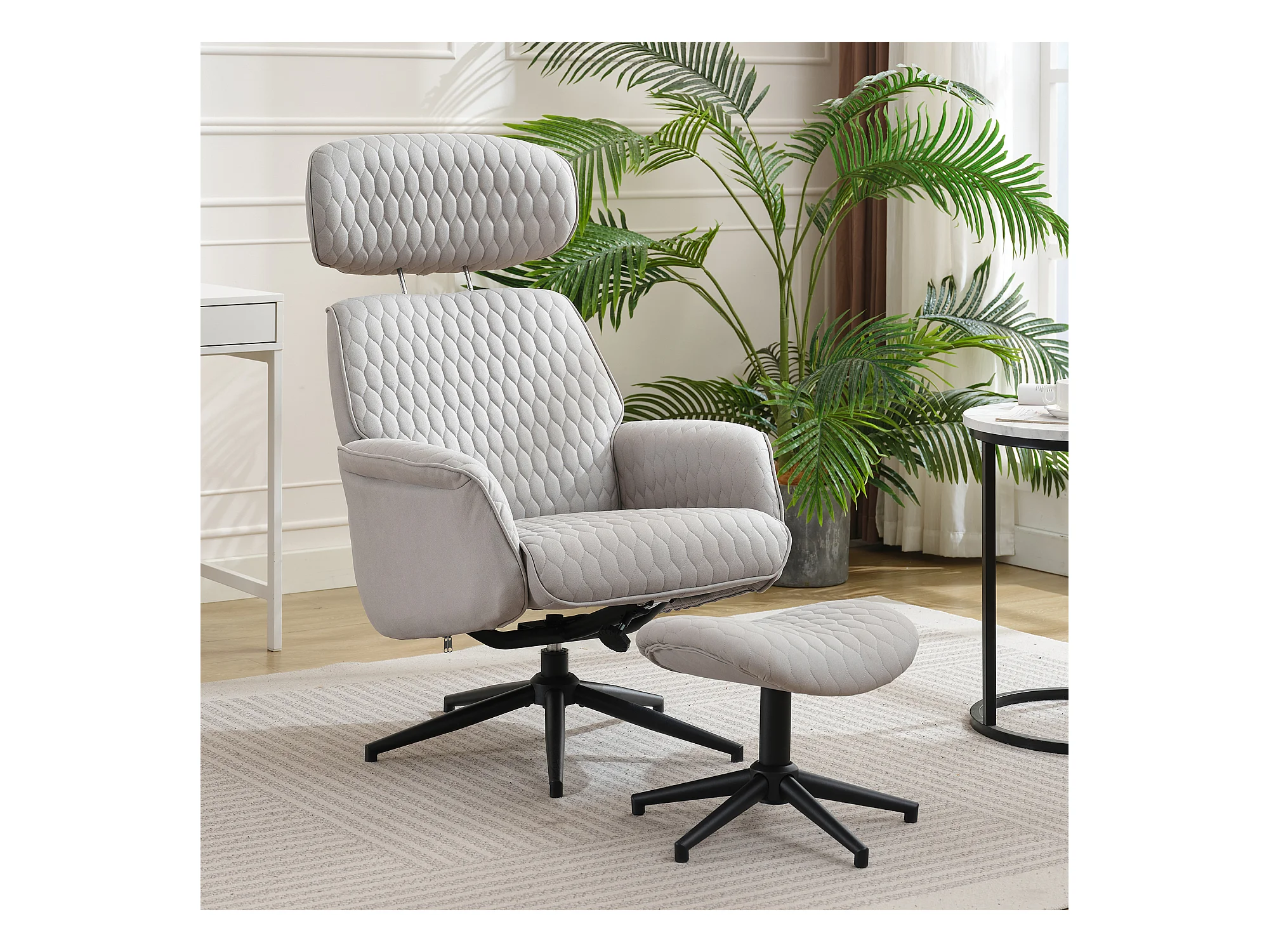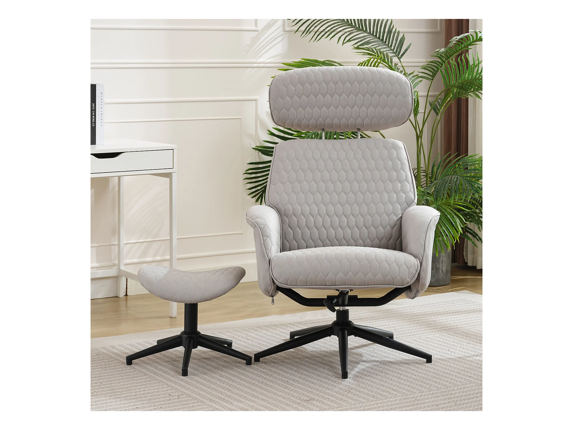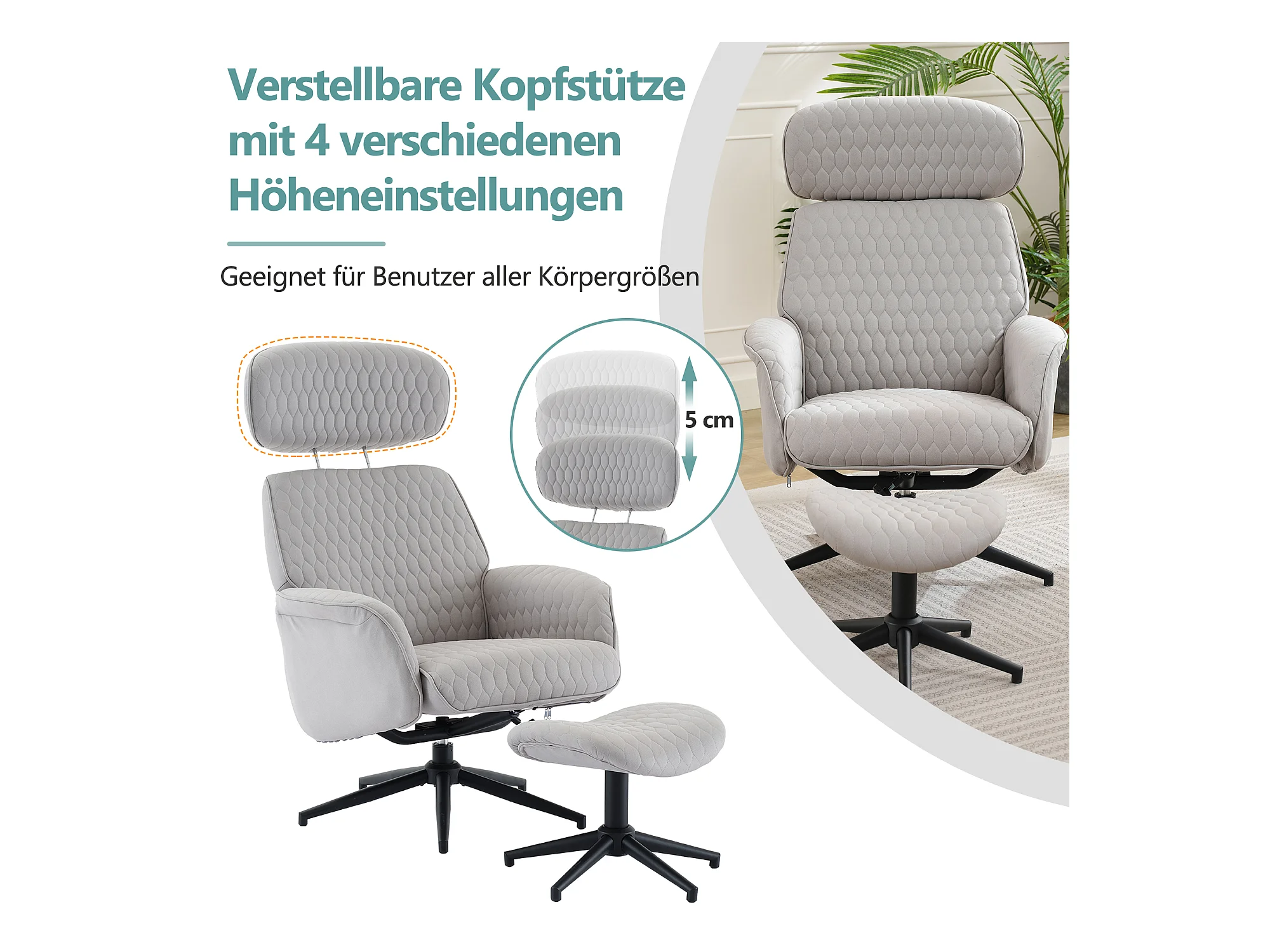 Chaise pivotante à 360° avec inclinaison réglable (95-125°) - Repose-pieds - Tissu technique - Gris
