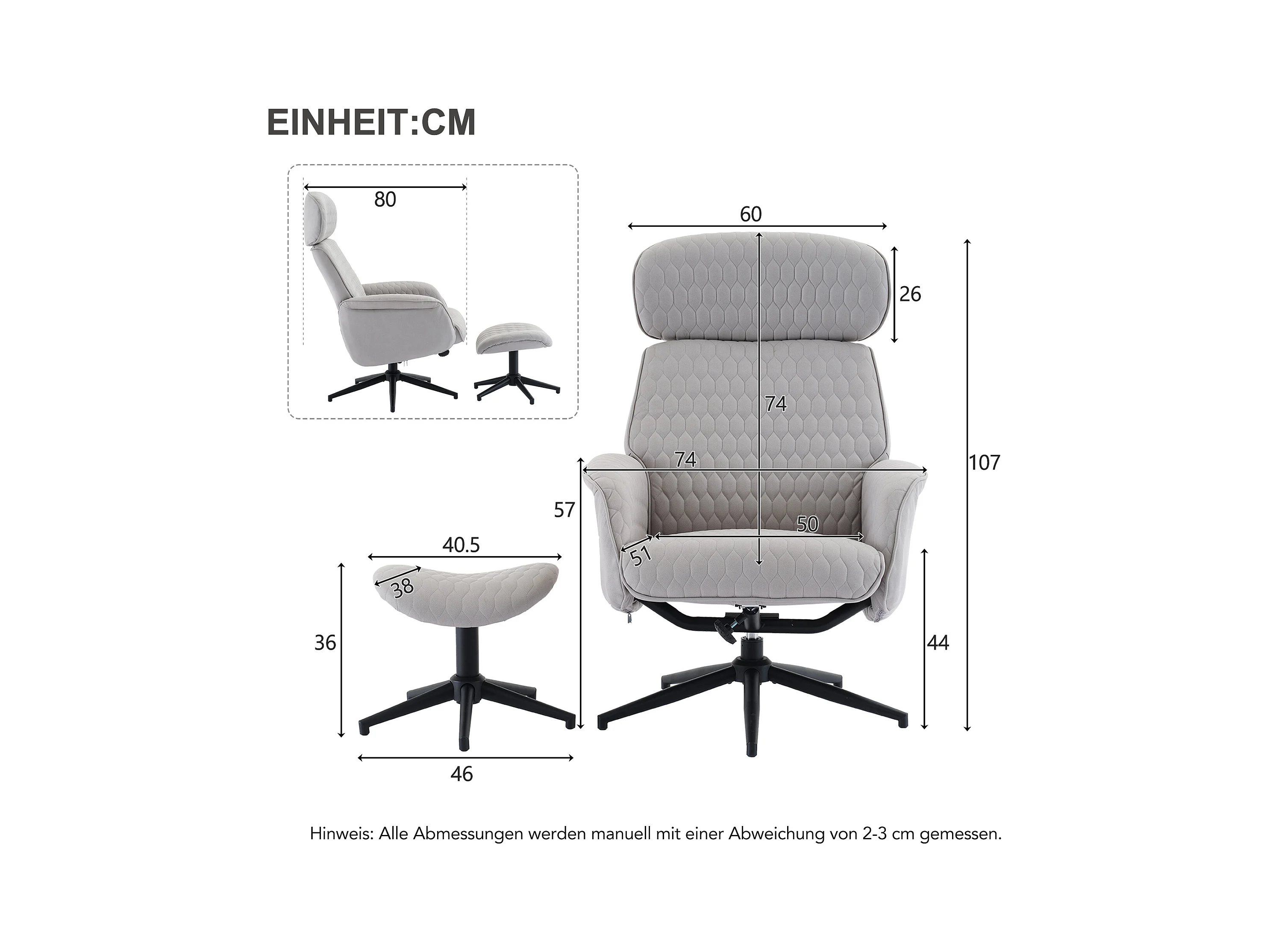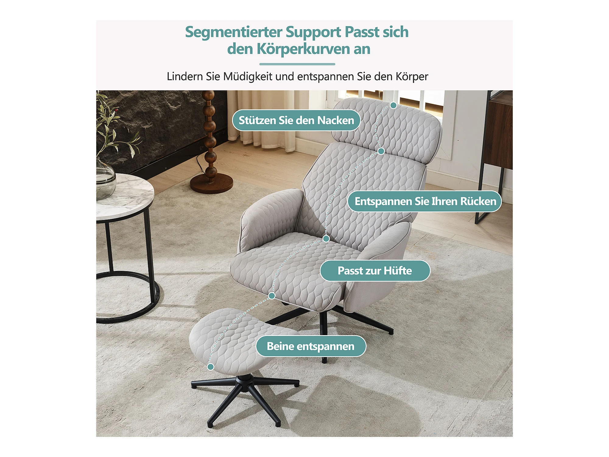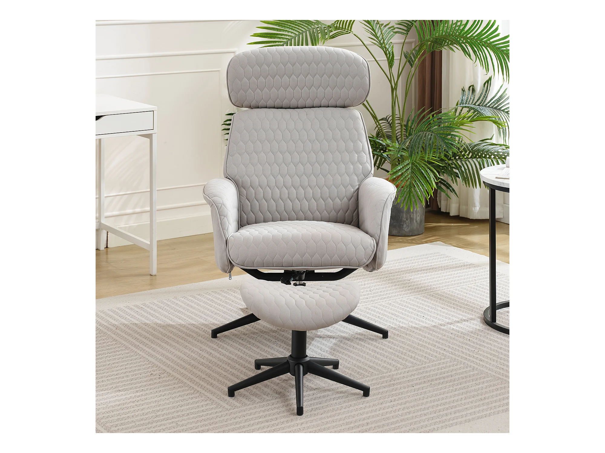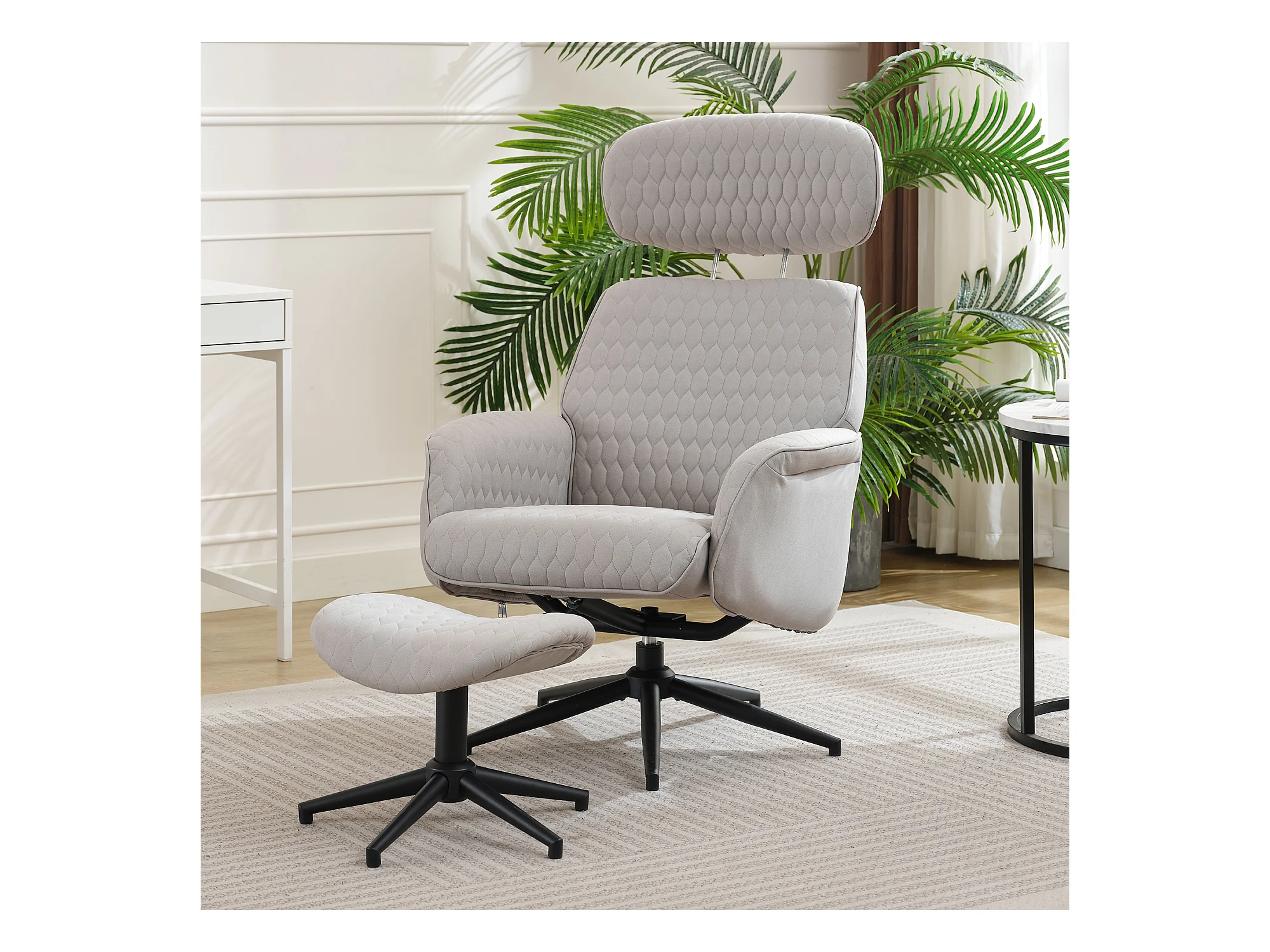 Chaise pivotante à 360° avec inclinaison réglable (95-125°) - Repose-pieds - Tissu technique - Gris