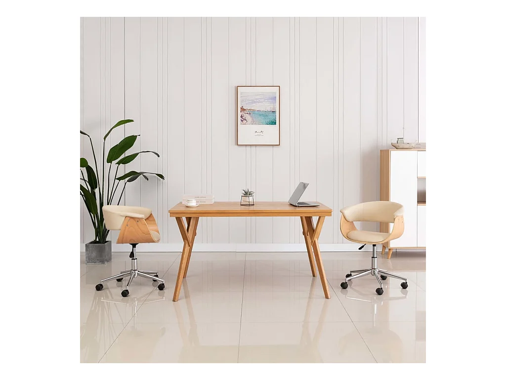 Chaise pivotante à manger Crème Bois courbé et Similicuir