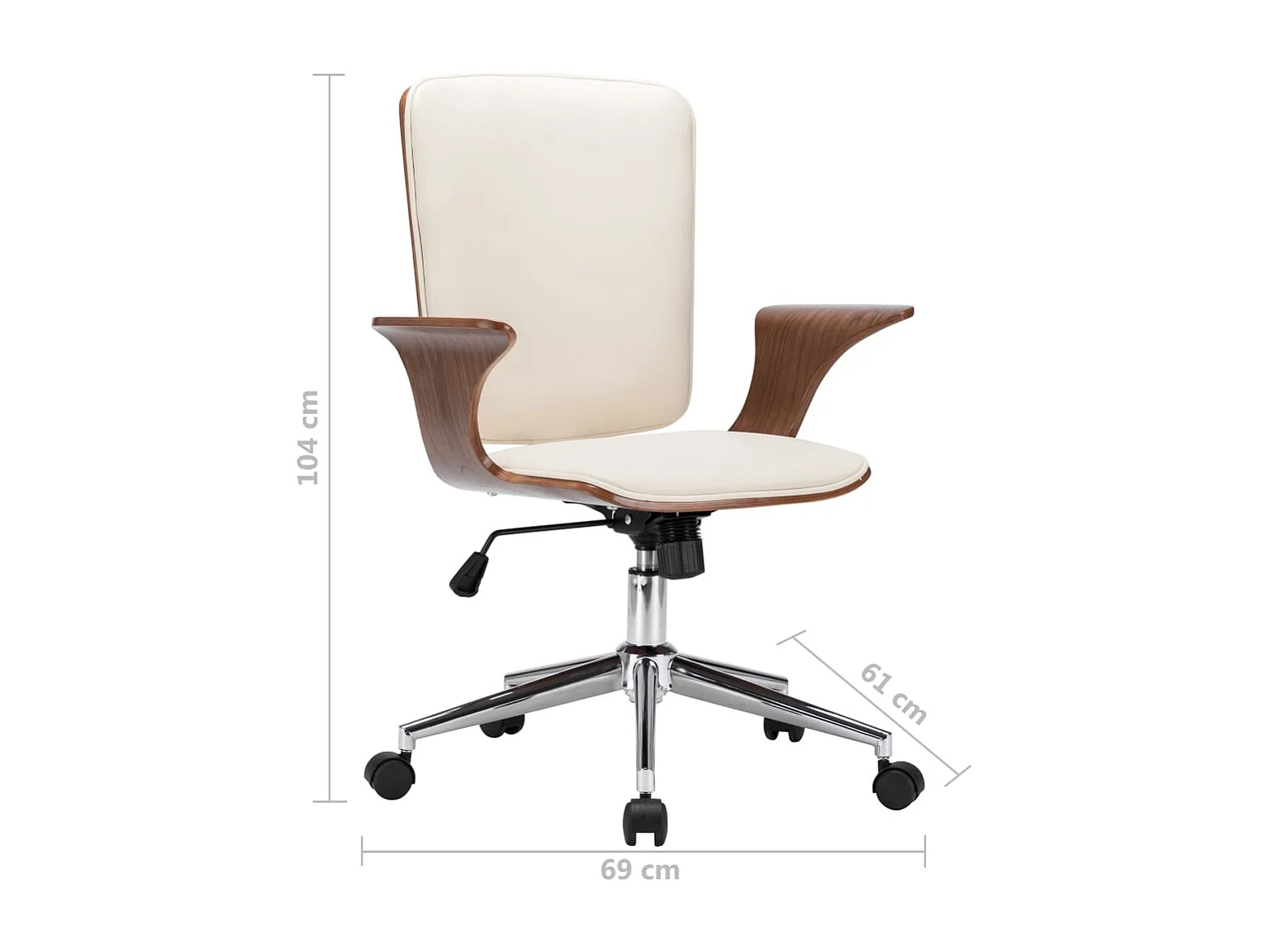 Chaise pivotante de bureau Crème Bois courbé et similicuir