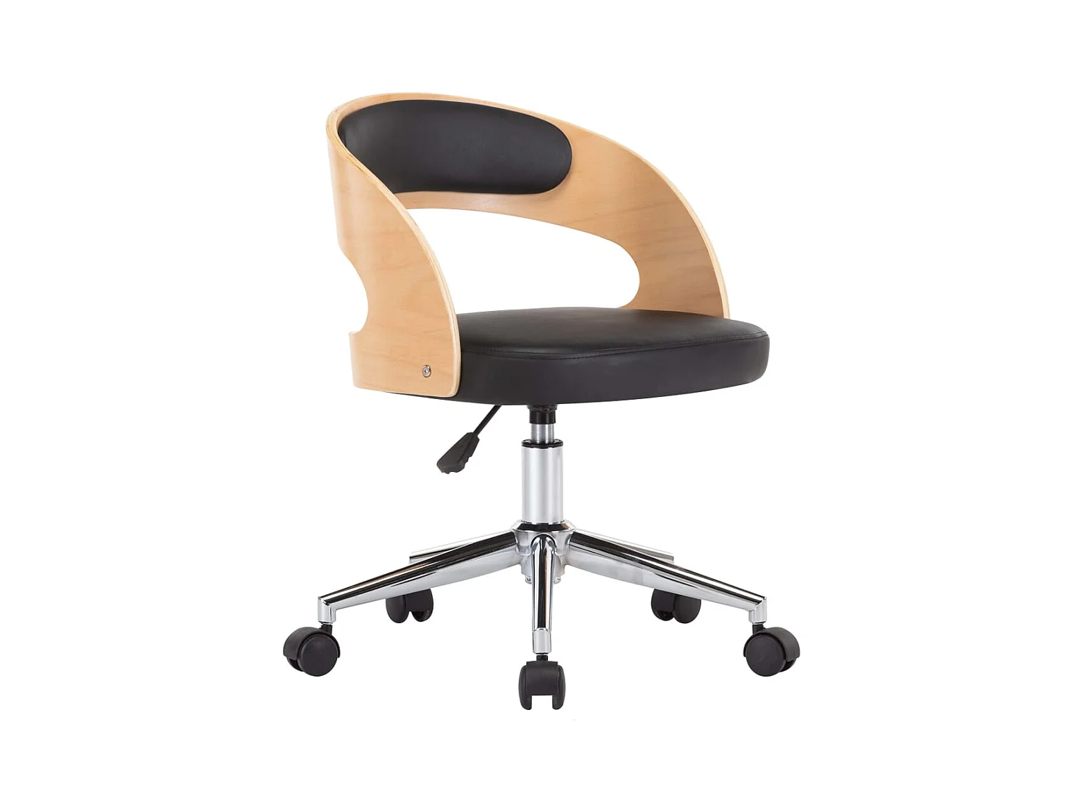 Chaise pivotante de bureau Noir Bois courbé et similicuir