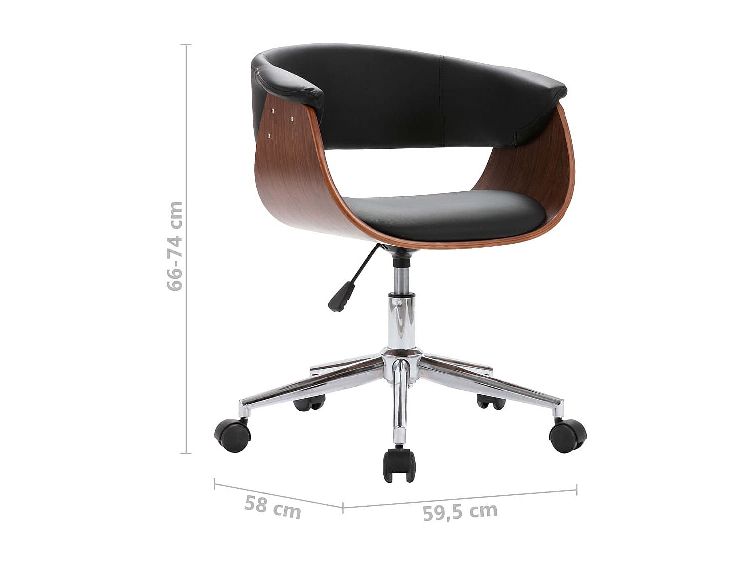 Chaise pivotante de bureau Noir Bois courbé et similicuir