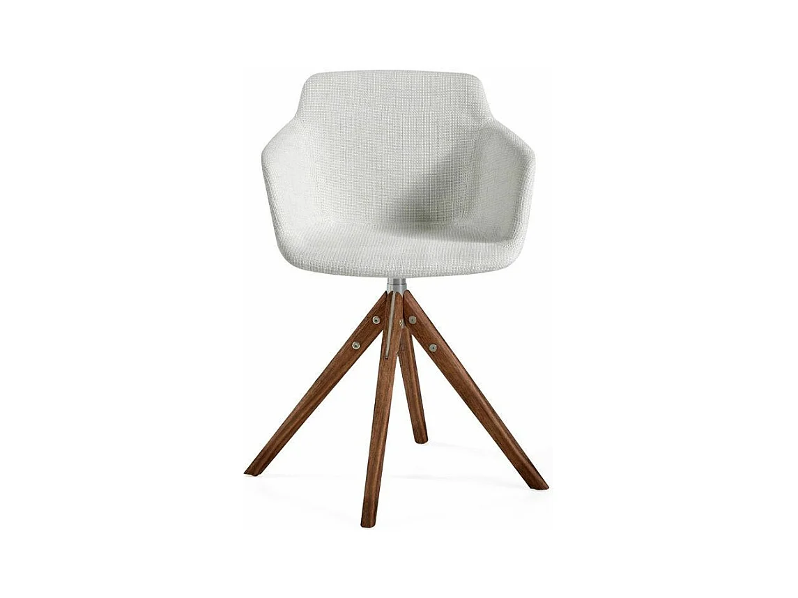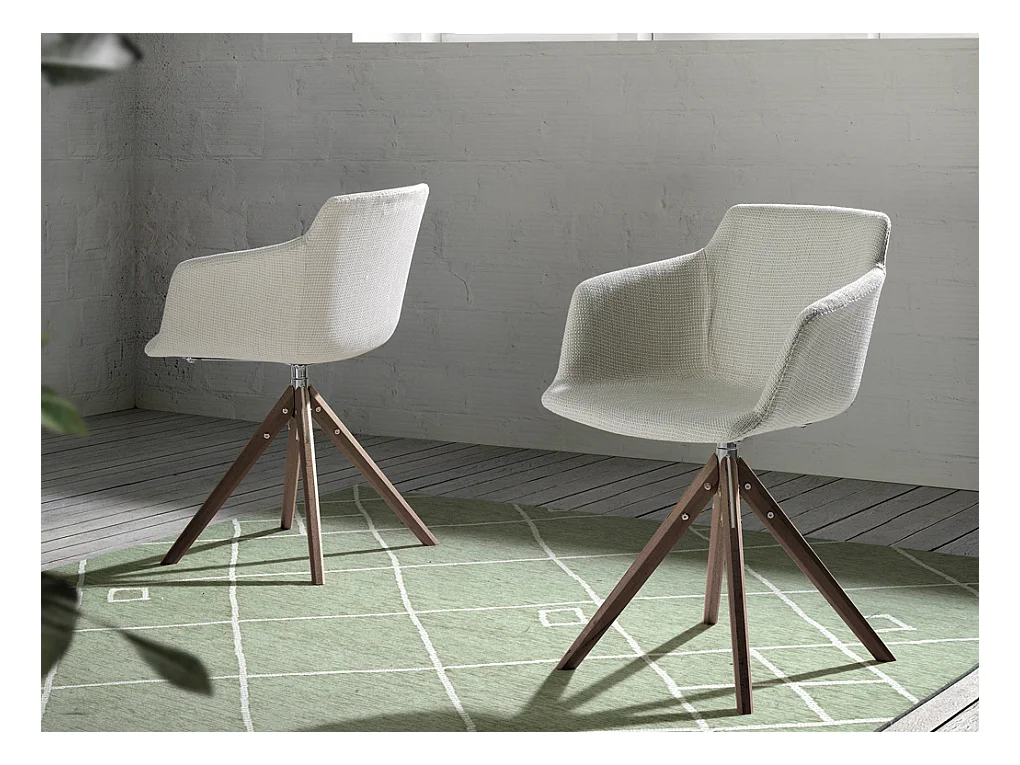 Chaise pivotante tissu beige et bois de frêne Ramia - Lot de 2-Couleur DUO 01
